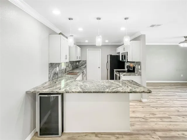 Welcome to your beautifully updated 2-bedroom, 2-bath home with a 1-car garage in the highly desirable Jockey Club of North Port! Just a short walk to the community clubhouse and pool, and minutes from shopping, dining, and top-rated schools, this location offers unbeatable convenience and charm. Step inside to discover luxury vinyl flooring throughout, giving the home a sleek, modern feel. The fully renovated kitchen features brand-new granite countertops, stainless steel appliances, and a built-in wine cooler—perfect for entertaining or relaxing in style. Enjoy Florida living at its finest with a spacious screened-in lanai overlooking the oversized backyard, ideal for pets, play, or future garden plans. Don’t wait—homes in this sought-after neighborhood move fast. Schedule your showing today!