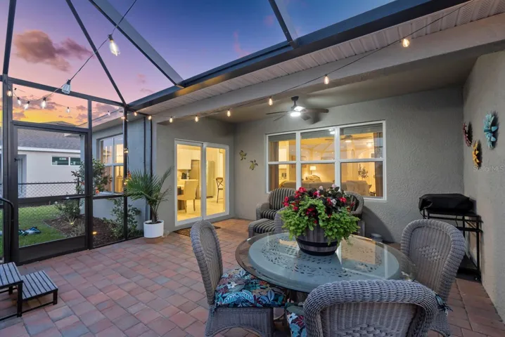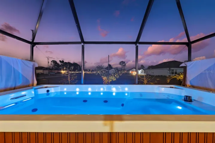 Step outside to your private Florida oasis—a screened, extended lanai with paver flooring and a heated 7′ x 14′ swim spa, ideal for year-round relaxation or recreation.