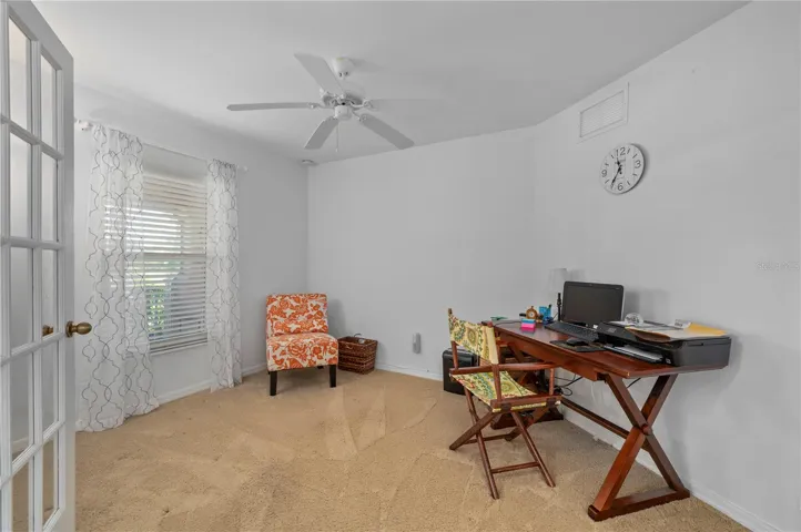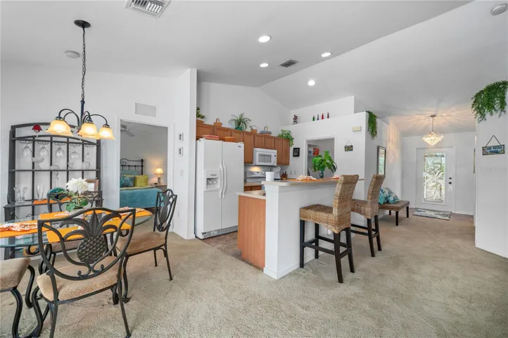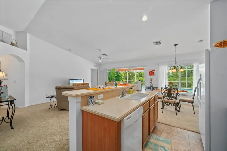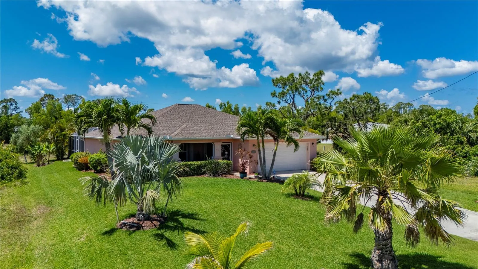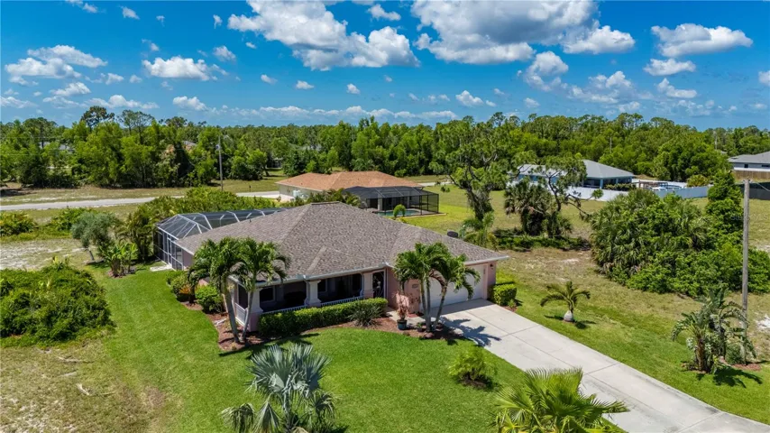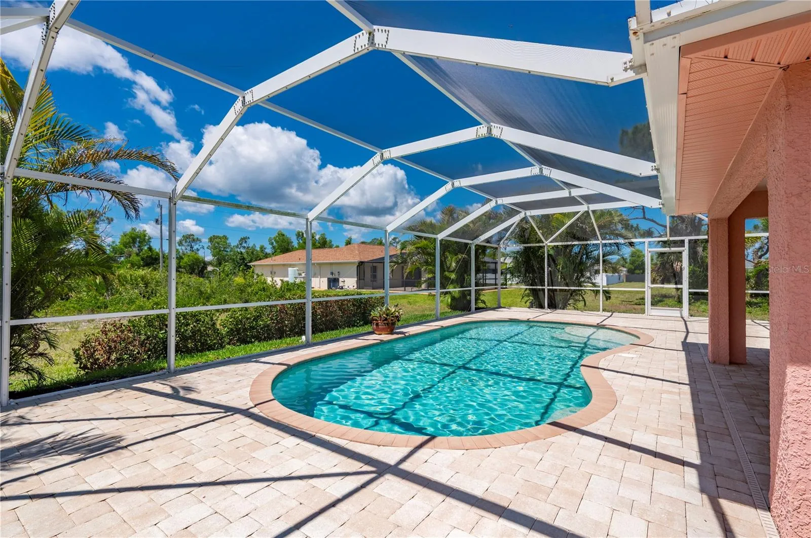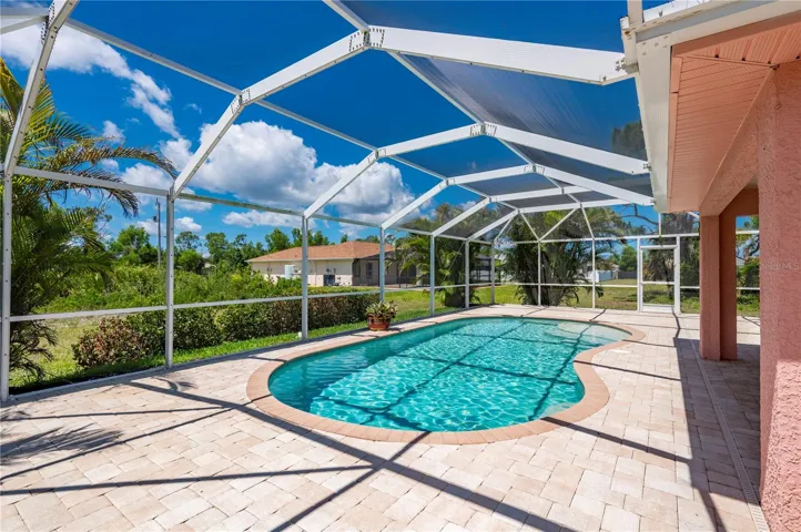 PRICE IMPROVEMENT! Step into your own slice of paradise where every day feels like a vacation. This fully furnished Florida-style retreat offers the perfect blend of charm, comfort, and simplicity-with all the features of a larger home, minus the upkeep. Tucked away near Cape Coral’s beaches, golf courses, dining and shopping, it’s ideally located for both relaxation and convenience. Inside, the natural light pours through soaring 11-foot ceilings and triple sliding glass doors, creating a bright, open living space that flows seamlessly onto the oversized screened lanai and heated pebble-tech pool-ideal for entertaining or quiet evenings under the stars. The 3-bedroom layout includes a spacious den with elegant French doors, easily converted into a fourth bedroom or home office. Subtle architectural details like accent plant shelving add character, while practical touches-accordion hurricane shutters, a water softening system, 2023 roof, and full irrigation-offer peace of mind. Enjoy morning coffee on the cozy front patio or unwind in the inviting living room that radiates a warm coastal feel. Plus, No hurricane or flood damage from the last storms. With no HOA or deed restrictions, this home is a perfect winter getaway, income-producing investment, or your ticket to the easygoing Florida lifestyle.