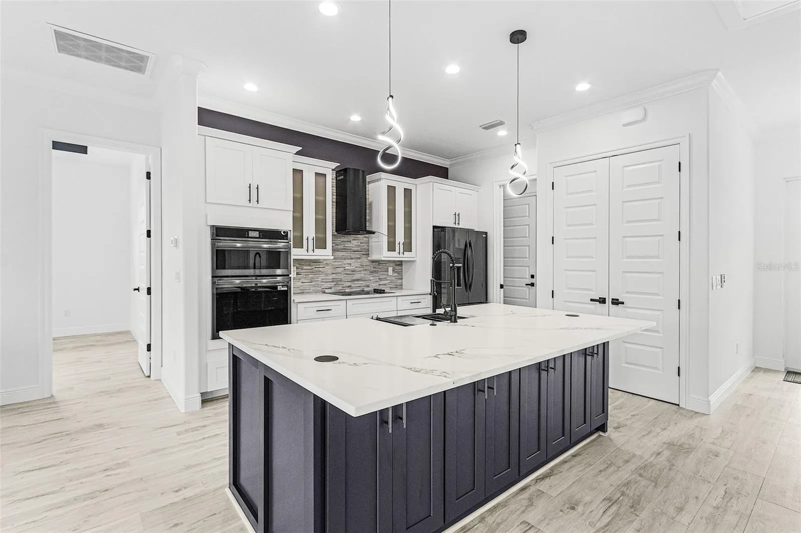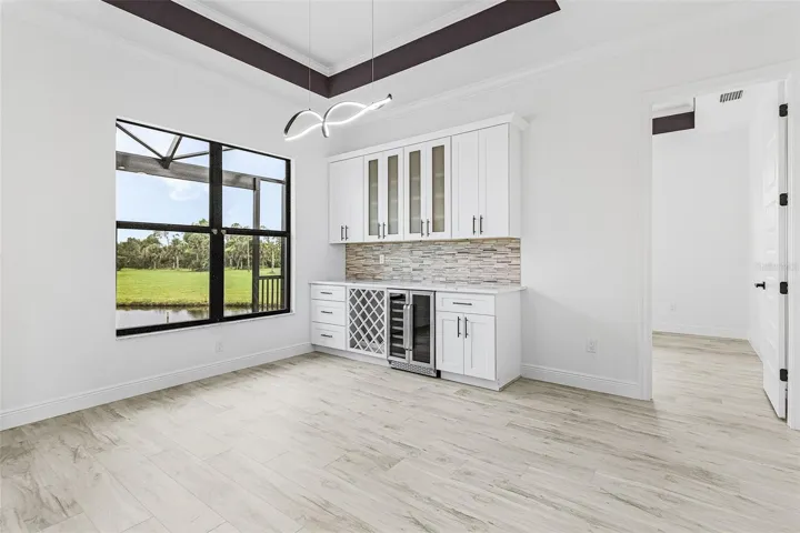 Upgrades galore! In addition to the 90-degree slider in the great room, you’ll enjoy a gorgeous kitchen and dining room with level IV Britus Quartz countertops, an abundance of custom dovetail cabinetry with glass inserts, and soft closing doors and drawers. We’ve added extra cabinets in the dining room including a wine/beverage cooler! A Combo wall oven/microwave, flat cooktop, an upgraded fridge, and a very quiet dishwasher.