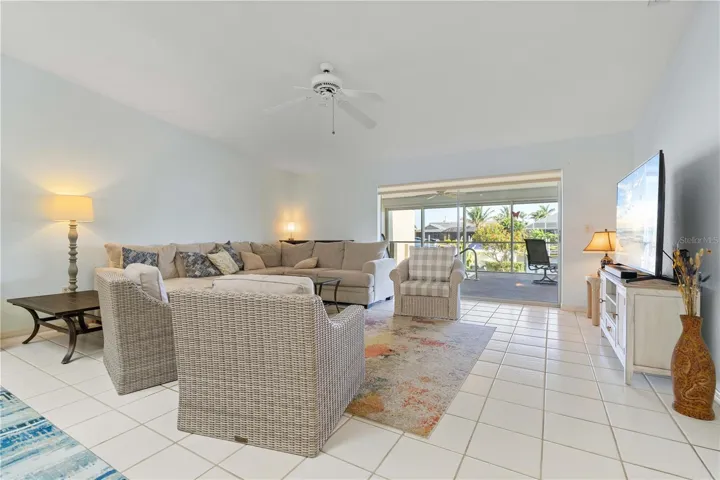 ISLES COVE VILLA W/DEEDED DOCK, SAILBOAT ACCESS & SOUTHERN WATERFRONT EXPOSURE Enjoy the ultimate in Florida waterfront living with this spacious 3 bed/2 bath villa in Isles Cove of Punta Gorda Isles. Overlooking Drum Fish Bayou Canal, this end-unit villa includes a deeded dock just steps from the back door with quick sailboat access to Charlotte Harbor via Ponce Outlet as well as a desirable southern exposure, delivering both stunning sunrise and sunset views over the water. Step through a private, open-air courtyard into a light-filled interior with soaring cathedral ceilings, multiple skylights, and tile floors throughout the main living areas. A flowing great room design connects the oversized kitchen, formal dining, and living areas—perfect for entertaining or relaxing. The kitchen features abundant cabinetry, solid surface counters, breakfast bar seating, and a closet pantry. The great room opens seamlessly to an enclosed waterfront lanai featuring a built-in hot tub and panoramic canal views, creating a private oasis designed for year-round enjoyment. The split bedroom floor plan ensures privacy for owners and guests alike. The spacious primary suite features wood-look laminate flooring, two walk-in closets, and a large en-suite bath with dual sinks, a walk-in shower, soaking tub, and makeup vanity. Two guest bedrooms—one currently serving as a home office or hobby space—share a full bath with glass-enclosed shower. A generously sized interior laundry room provides a utility sink and extra storage. Out back, your deeded dock with water and electric hook-ups puts world-class boating and fishing right at your fingertips. Whether you’re relaxing on the lanai with your morning coffee or watching boats return home at the golden hour, the southern exposure ensures sunlight and vibrant skies from dawn to dusk. Isles Cove is a tranquil community offering beautifully maintained tropical landscaping, a heated community pool, and guest parking. New tile roofs added in 2024. Located just minutes from Fishermen’s Village, Isles Yacht Club, and historic downtown Punta Gorda- this is Punta Gorda living at its best! Dock your boat just steps from your door and spend your days on the water or out enjoying all the area has to offer including golf, tennis, pickleball, and miles of scenic biking paths. While known for its boating, Punta Gorda also has a vibrant art & music scene with frequent festivals & art fairs on weekends. Wander through the weekly farmers’ market for fresh, local finds or hop in & out of the boutique shops on Marion Ave. You’ll discover what makes Punta Gorda the ultimate destination for a relaxing life.