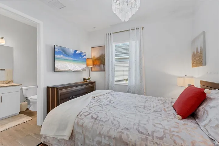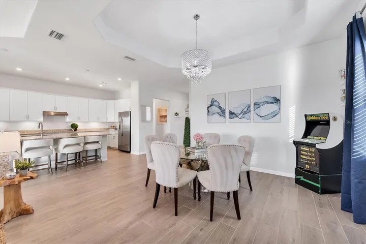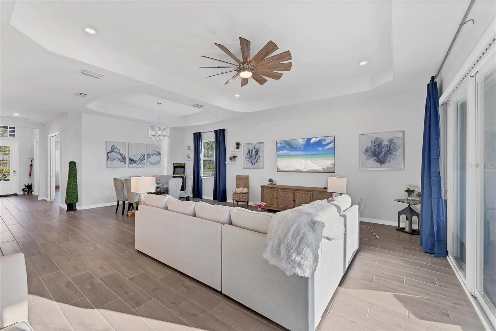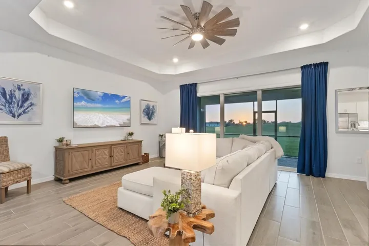 Step inside to discover high-end finishes throughout, including elegant plank tile flooring, designer lighting, and a soft, neutral color palette. The open-concept layout seamlessly connects indoor and outdoor spaces, with expansive sliding doors leading to a spacious lanai—ideal for lounging, dining, or simply enjoying Florida’s breathtaking sunsets.