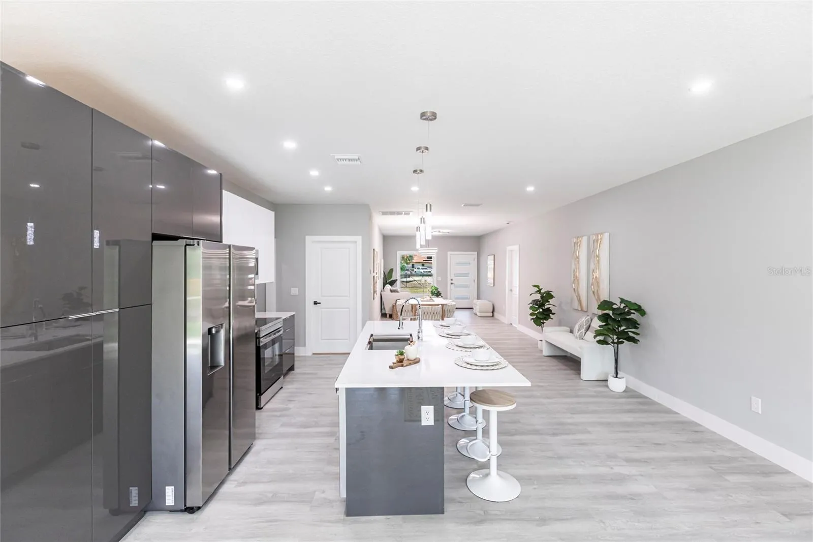 achievement redefines modern living by seamlessly combining strength, comfort, safety, sustainability, and style. Upon entering, you’re greeted by a light-filled open-concept layout that exudes modern sophistication while maximizing everyday functionality. The expansive great room flows effortlessly into an Italian Style-Designer kitchen featuring a large center island, premium quartz countertops, soft-close cabinetry, and sleek stainless steel appliances—creating the perfect hub for both family life and elegant entertaining. Thoughtfully designed to adapt to your lifestyle, CyberHouse 7 includes a private guest suite with a separate exterior entrance and full bathroom, ideal for multi-generational living, visiting guests, or flexible rental income opportunities. The luxurious primary suite serves as a true retreat, complete with a spa-inspired bathroom featuring a soaking tub, frameless glass shower, dual vanities, and separate his-and-hers walk-in closets. CyberHouse 7 is engineered with uncompromising strength & safety at its core. Constructed using only a negligible amount of wood, this home features a reinforced galvanized steel structural frame/trusses and ferro-cement exterior shell, providing unmatched resilience against the most aggressive and dangerous hurricanes, fires, termites and mold. This commercial strength-grade construction is designed for maximum longevity with minimal maintenance and offers significantly lower insurance costs, delivering true peace of mind for homeowners. More than just durable, this home embodies Zero-Compromise Sustainability. CyberHouse 7 is a fully Net-Zero Energy home, powered by the most advanced solar energy system with a whole- home Tesla battery backup. Paired with an ultra-efficient 18 SEER inverter variable-speed HVAC system and high-performance appliances, the home is built to generate as much energy as it consumes—eliminating electric, water and sewer bills while maximizing environmental responsibility. The building envelope is fully sealed and insulated with the most advanced structural-grade closed-cell spray foam, delivering exceptional thermal and acoustic comfort and protection while dramatically reducing energy loss. Health-conscious and eco-friendly materials are used throughout, including VOC-free paints, hypoallergenic components, and solid-core non-toxic cabinetry throughout. CyberHouse 7 also offers an array of integrated state-of-the-art features, including Miami-Dade impact-rated exterior doors, oversized Low-Emission High-Impact windows for enhanced storm protection and energy performance, home automation systems for lighting, climate, and security, WaterStar-certified plumbing fixtures, and a hybrid smart water heater. A 420-square-foot EV-ready garage, built with steel-reinforced concrete, further enhances the home’s forward-thinking design. Ideally located near top-rated schools, shopping, dining, and just minutes from Gulf Coast beaches, CyberHouse 7 delivers the rare combination of resilience, efficiency, smart innovation, and design-forward living. This is more than a home—it’s a future-proof