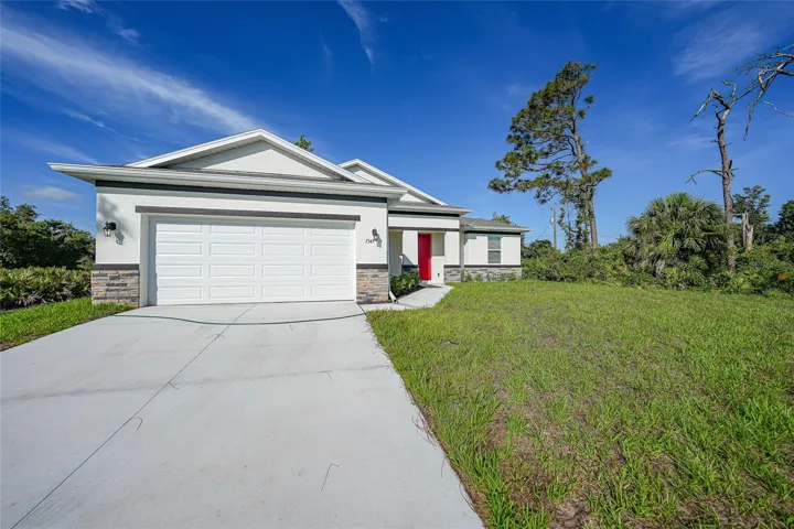 Welcome to 7345 Ellis Ln in beautiful Port Charlotte, Florida—a move-in ready home built by Ecosun Homes, a leading net-zero builder in Southwest Florida known for energy efficiency, sustainability, and affordability. This thoughtfully designed home features 3 bedrooms, 2 bathrooms, a 2-car garage, and 1,502 square feet of open-concept living space—perfect for entertaining family and guests. With striking stonework on the front exterior, 9’4″ ceilings, Low-E windows, and an insulated front door, the home offers strong curb appeal and energy-conscious design from the moment you arrive. Inside, you’ll find a spacious layout that flows seamlessly from room to room. The full kitchen appliance package is included, making move-in a breeze. For added comfort and long-term savings, the home is equipped with spray foam insulation in the attic, concrete block insulation behind the drywall, a hybrid water heater, a 16 SEER air conditioning system, and a clean air filtration system—all designed to keep your home cool in the summer and warm in the winter. It also features a built-in pest control system located within the walls, which can be activated via a monthly subscription through HomeTeam Defense. Smart home features like a keyless entry system and remote-controlled garage access offer modern convenience, while the home’s solar-ready wiring allows buyers to easily upgrade to solar power. For just $20,000, buyers can add solar panels and potentially qualify for a one-time federal tax credit of up to $10,000, along with an average savings of $6,000 in utility bills. Peace of mind comes with a 210 warranty and a 10-year structural warranty, providing long-term protection for your investment. Located in a non-HOA community and outside of a flood zone, this home is ideal for those seeking a low-maintenance, high-efficiency lifestyle. With its stylish design, forward-thinking features, and unbeatable value, 7345 Ellis Ln is the perfect opportunity to own a smart, energy-efficient home in a growing Florida community.