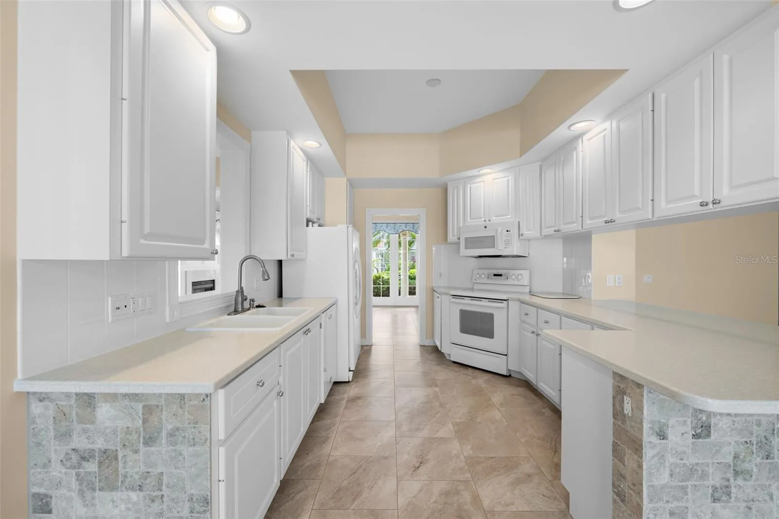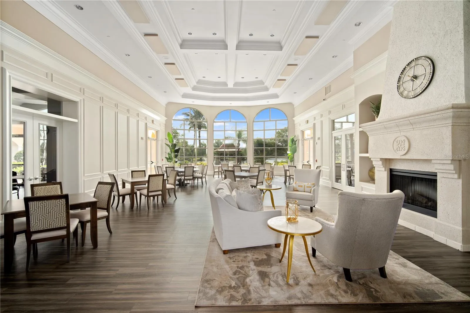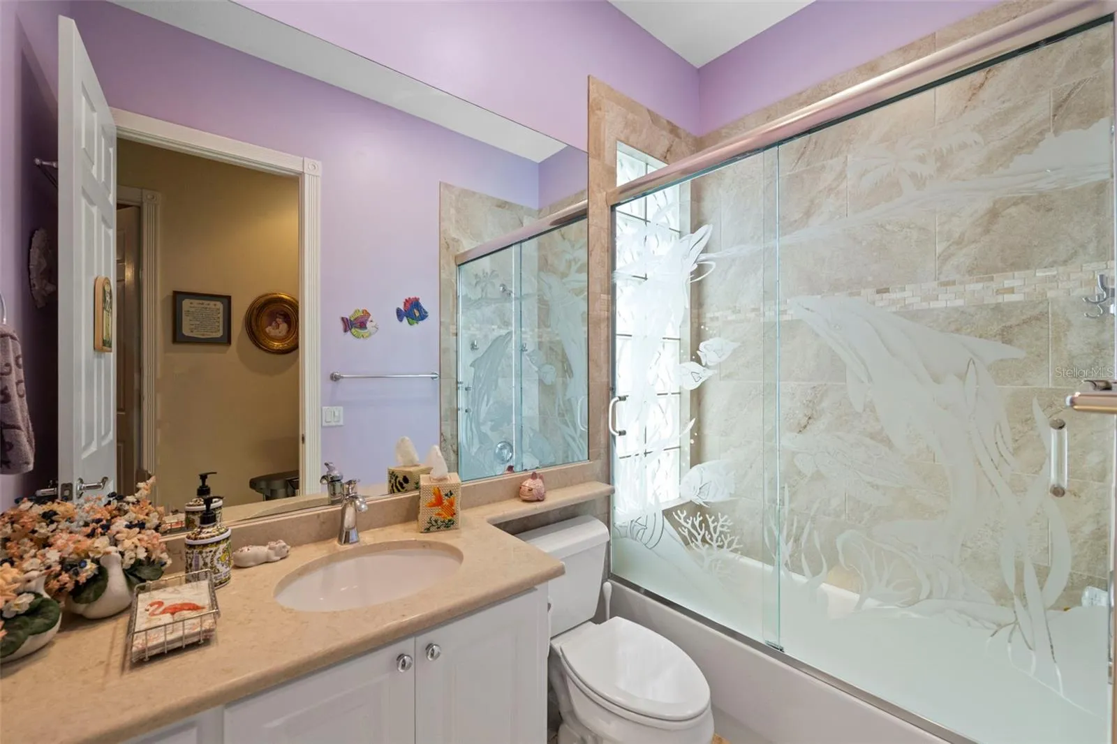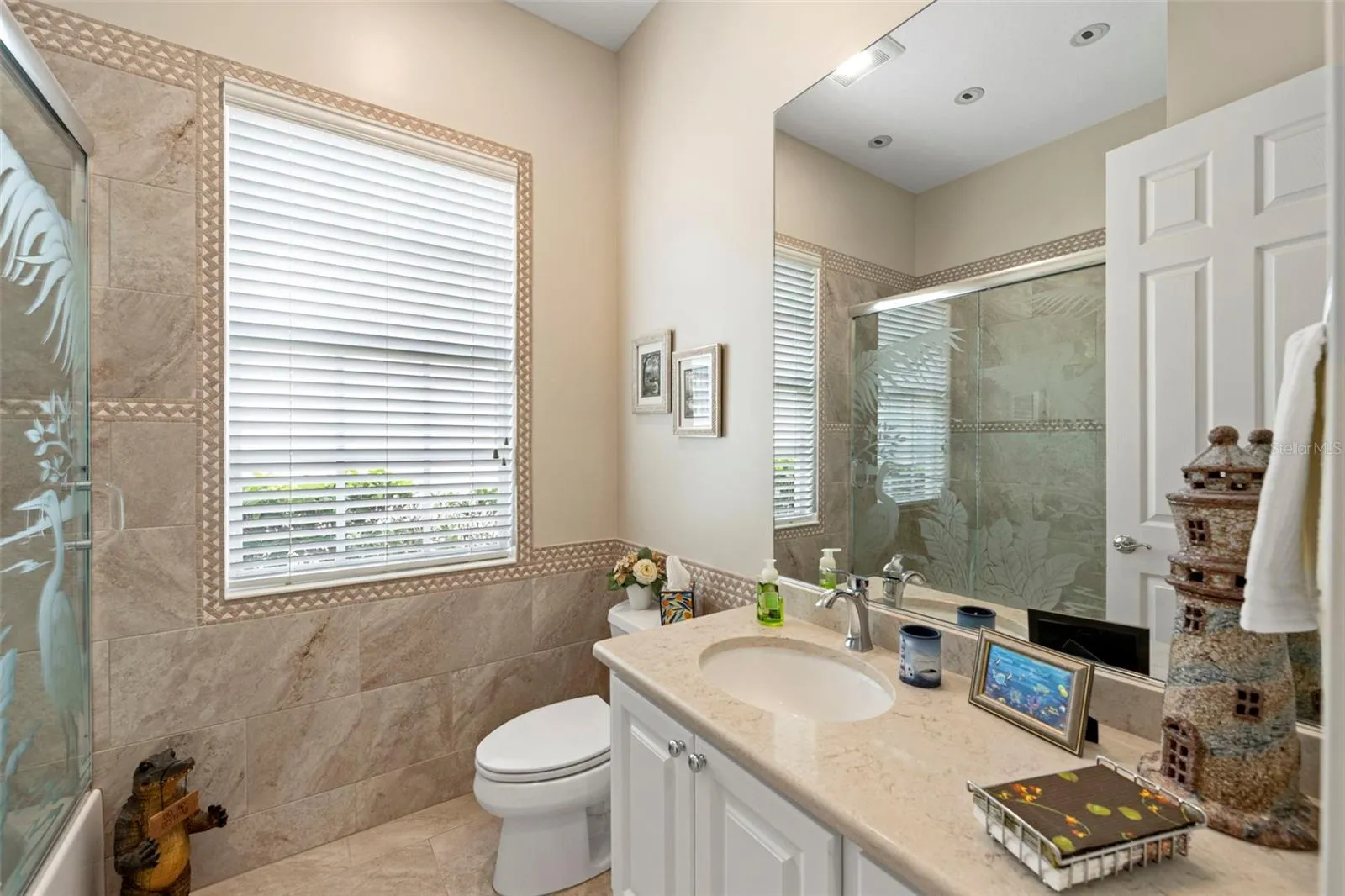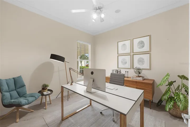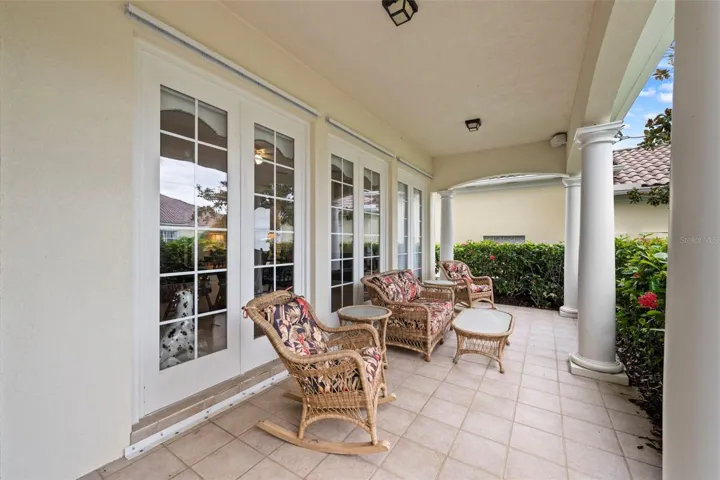 Located in the sought-after community of VillageWalk, this beautifully maintained 4-bedroom Carlyle model offers a spacious open floor plan and sits on a premium waterfront lot with water on two sides. Enjoy peaceful outdoor living with an awning-covered lanai and extra deeded driveway space for added convenience. Interior features include 10- and 12-foot ceilings, neutral ceramic tile flooring throughout the main living areas (2018), crown and detail moldings, motorized blinds in the front of the home, and a cozy fireplace in the living room. The family room boasts a built-in wall unit, perfect for entertainment and storage. The kitchen is designed for both function and style with Corian countertops, a closet pantry, and a newer microwave. The guest bathrooms feature updated quartz countertops, while the primary bathroom includes granite counters, a soaking tub, walk-in shower, vanity table, and generous storage with a walk-in closet plus three additional closets. One of the guest bedrooms includes a built-in setup ideal for a home office. Other recent updates include a brand-new hot water heater, cabinets in garage and an A/C system from 2017. DiVosta built to last with poured concrete reinforced construction. VillageWalk is a guard-gated, resort-style community offering outstanding amenities: clubhouse, restaurant, tiki bar, boutique, salon, 6 Har-Tru tennis courts, pickleball, bocce ball, lap pool, heated lagoon pool, and miles of walking and biking trails. Golf carts welcome! Conveniently located near Siesta Key Beach, dining, shopping, and top medical facilities. Full-time HOA manager on-site. Call today for your private showing.
