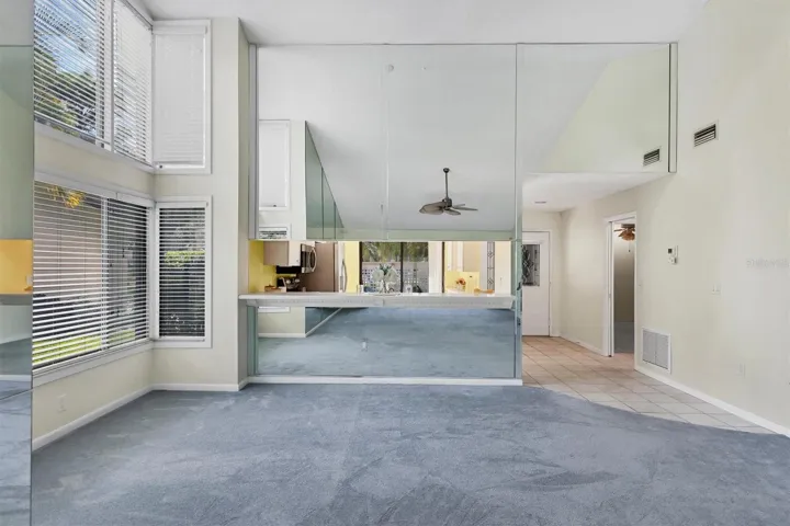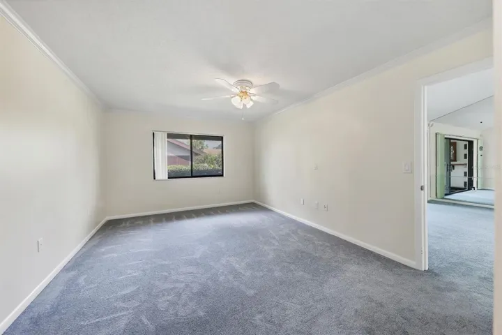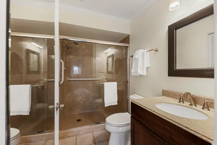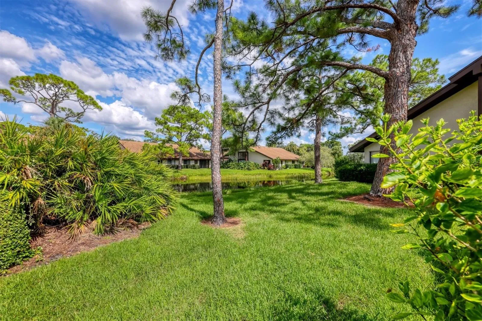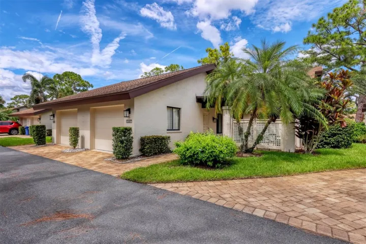 Inviting and maintenance-free, this end-unit villa offers peaceful pond views in The Meadows—one of Sarasota’s most sought-after communities just 15 minutes from downtown. Nestled along a picturesque street with lush landscaping, this home welcomes you with its charming front pergola and attached one-car garage. Inside, the newer neutral paint & carpeting create a warm and welcoming atmosphere. A soaring cathedral ceiling, tall bay window, and sliding glass doors fill the living spaces with natural light while seamlessly connecting the indoors to the outdoors. The kitchen, with is fresh & inviting tone, features durable Corian countertops and direct access to the front pergola—perfect for grilling or enjoying al fresco dining. The spacious primary suite offers a walk-in closet and a well-appointed en-suite bath featuring dual counter-height granite vanities and a step-in shower equipped with supportive handrails for added comfort and safety. The thoughtfully designed guest bathroom enhances accessibility with a raised, handled commode and an easy-access walk-in tub complete with a side-entry door and handheld showerhead—ideal for guests or residents seeking additional support and convenience. A glass-enclosed Florida Room overlooks the pond, where daily birdlife creates a serene backdrop for morning coffee or evening relaxation. Updates include a 2024 A/C system, updated bathrooms, 2018 shingle roof, 2024 repainted interiors, and 2024 new carpeting. Ideally located within 500 feet of two community pools, just one block to the shopping village, and close to all of The Meadows’ amenities, this villa offers exceptional convenience. Life in The Meadows includes 1,650 park-like acres with 14 miles of walking and biking trails. Optional Meadows County Club Memberships available with golfing, tennis courts, and the state-of-the-art Lifestyle & Wellness Center. Beyond the community, you’re minutes from award-winning beaches, cultural attractions, Nathan Benderson Park, and the world-class shopping and dining at University Town Center. This home combines comfort, convenience, and a lifestyle that captures the best of Sarasota living.