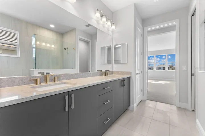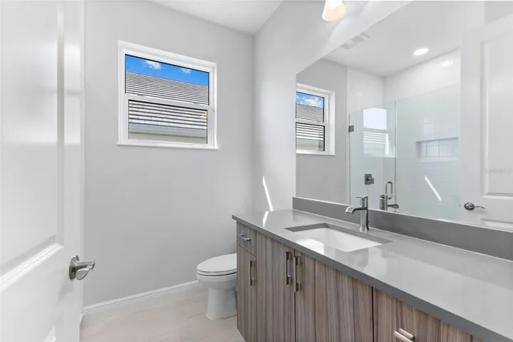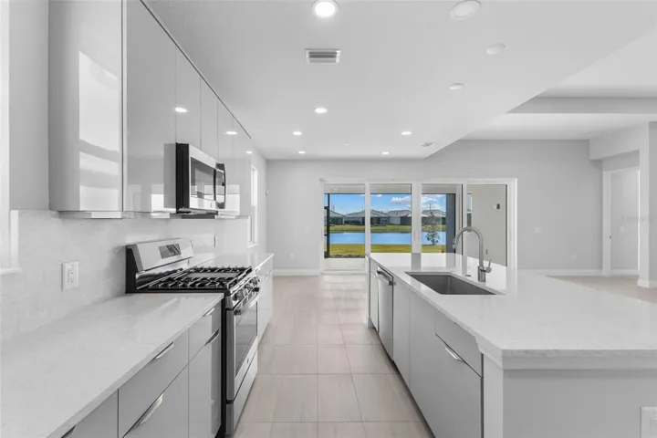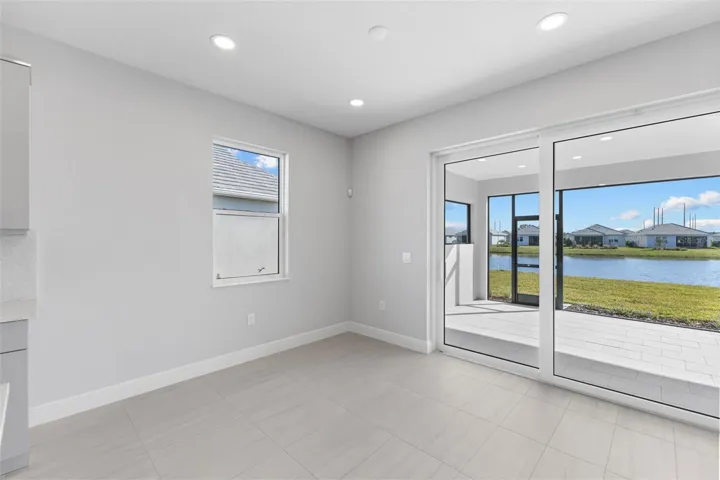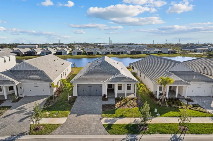 Experience waterfront living in the amenity rich Lakehouse Cove at Waterside at this stunning, stunning 4-bedroom, 3-bathroom home that provides a balanced blend of coastal charm and elegance. The inviting pavered front porch is a welcoming start to this beautifully designed home. This home has tiled floors throughout the main living areas and high-end carpeting in all 4 bedrooms. The expansive open-concept kitchen and living and dining area are anchored by the oversized screened lanai with serene lake views. The beauty of natural light from four large hurricane glass doors and windows makes the main living areas cheerful and welcoming. The well-appointed kitchen has sleek grey cabinetry, gas cooking range, beautiful quartz countertops and a spacious walk-in pantry. The primary suite, is a retreat featuring high ceilings, a spa-like ensuite bath with a large walk-in shower, dual vanities with quartz countertops, and walk-in closet. The open split floor plan is nicely laid out and just off the foyer, two bedrooms share a bath with a walk-in shower, while a private guest suite on the opposite side features an en-suite bath with walk-in shower. Additional highlights include thoughtfully designed storage throughout, a laundry room with abundant cabinetry and sink. Lakehouse Cove, boasts resort-style amenities, including resort-style pool, a state-of-the-art fitness center, clubhouse, pickleball, a playground, and scenic walking trails to explore the natural appeal of the area. Take the water taxi to the Waterside downtown area and enjoy Waterside Place where you can enjoy fine dining, shopping, farmer’s market on Sundays, live entertainment and so much more.