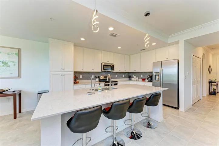 New to the Market- Turnkey Furnished and Available for 2025-2026 Season! Experience luxury at this amenity rich gated Lakewood National Golf Club Birkdale Condo. This exquisite first floor condo offers breathtaking views of serene water, lush golf courses, and protected preserves, creating a tranquil retreat. This 2-bedroom 2 bath condo features an open-concept living and dining area bathed in natural light. The well-appointed kitchen has an oversized quartz island that provides ample seating a stylish backsplash and dining area off the kitchen. The spacious primary suite accommodates a king-size bed with an en-suite bathroom and walk-in closet, while the guest bedroom is situated near the guest bathroom has a sleek glass shower enclosure. The in-unit laundry is conveniently located and has pristine shaker cabinets. Exclusive golf experience: As part of the Arnold Palmer-designed championship golf course, you are sure to enjoy access to the 36-hole masterpiece. Experience resort-style living at one of two grand clubhouses, sate of the art fitness center, FULL-SERVICE SPA, Poolside restaurant Golf and Tennis Pro-shops, 8 har-tru tennis courts, 4 pickleball courts, Bocce Ball and driving range. There is plenty to do with a full-time activities’ director on site.