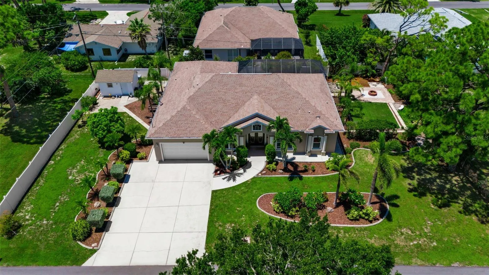 Welcome to this meticulously maintained, custom-built, and recently updated 2,426 sq. ft. home in beautiful Venice, Florida — WITH NO HOA and just 1.5 miles from the Gulf beaches and minutes from charming shops, dining, and recreation. Offering 4 bedrooms and 2 full bathrooms, this home is perfect as a primary residence or a vacation getaway. Enjoy your double lot with lush landscaping and the convenience of having city water and sewer (2018). From the moment you arrive, you’ll be impressed by the curb appeal — an oversized driveway, fruit trees, rose gardens, and walking paths around the home, all framed by a stately double 8’ front entry door with antique glass, protected by a hurricane-rated screen and portico. Step inside and you’re welcomed by soaring 12’ ceilings in the main living areas, 11’ ceilings in the rest of the home, extensive crown molding, double tray ceilings, and architectural details throughout. Natural light pours in from 17 large PGT hurricane-impact windows, while sound-barrier insulated walls keep the space quiet and serene. The open floor plan flows seamlessly into the gourmet kitchen, recently remodeled with expanded quartz countertops, reconditioned 42” custom cabinets, a stylish backsplash, and all new stainless steel and glass appliances including refrigerator, oven/range, microwave, washer, and dryer. A breakfast nook offers casual dining, while a bar-height counter creates the perfect gathering spot. The split bedroom layout features four bedrooms with three featuring cozy carpeting and one versatile bedroom/den finished with easy-care laminate flooring while 18″ porcelain tile on the diagonal enhances the main living areas and bathrooms. One of the guest bathrooms also include a smart bidet toilet that adds an extra touch of modern luxury. The spacious primary suite has direct access to the lanai through 8’ high sliders and features a fully remodeled spa-style bathroom with an oversized glass-enclosed shower clad in Brazilian granite, a soaking tub, new vanities and cabinets, upgraded tile flooring, and two walk-in closets. Outdoor living is at its best here, with an expansive lanai featuring an automated 23.5’ x 11’ screen for shade and comfort. Unwind in the Hot Springs Vanguard 6-person remote-controlled hot tub/spa with a new cover, or enjoy the peaceful backyard with privacy fencing, landscaped seating areas, and a well-maintained storage shed. The home is built for peace of mind with hurricane-rated features, including impact windows, a hurricane-mitigated garage door, and a hurricane-rated screen system. Additional upgrades include a high-capacity 5-ton AC system with warranty until 2035, a reconditioned roof with warranty through 2029, and a Ring security system with five hardwired cameras/lights. Located in one of Venice’s most desirable areas, you’re just minutes from Venice Beach, Historic Downtown Venice, fishing piers, boating, golf courses, and scenic parks. Only two blocks away, you’ll find the South Lemon Bay Preserve, perfect for nature walks and outdoor enjoyment, while the nearby public boat launch at Manasota Beach makes days on the water a breeze. Top-rated Sarasota County schools, medical facilities, shopping, and dining are all close by, making daily life convenient and enjoyable. With every upgrade already complete and a location that offers both coastal charm and everyday convenience, 5988 Viola Road delivers the lifestyle, comfort, and quality you’ve been searching for.