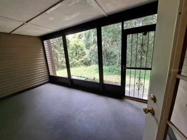 First floor condo in a private community of Baywood Meadows. End unit with the no rear neighbors. Backs up to the Conservation area. 3 bedrooms, 2 bathrooms with additional screened=in large porch. Move in condition. Washer and dryer hook up in the unit. Master bedroom offers large walk-in closet with double closets in the other 2 bedrooms. There is utility closet outside the unit, steps from the front door. Parking is a carport for one car with additional parking in the common area. Quite low HOA fee includes pool and pool maintenance, clubhouse, basic cable, internet, trash pick up, grounds maintenance, escrow reserve fund, common area taxes. Baywood Meadows is located close to the Suncoast parkway and Rt 52. Buyer to verify room sizes, pet restrictions