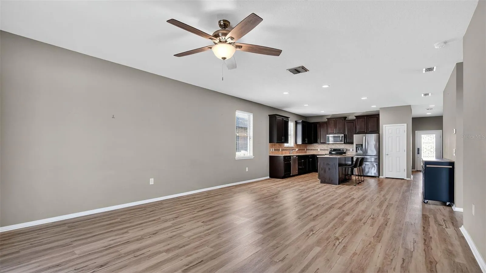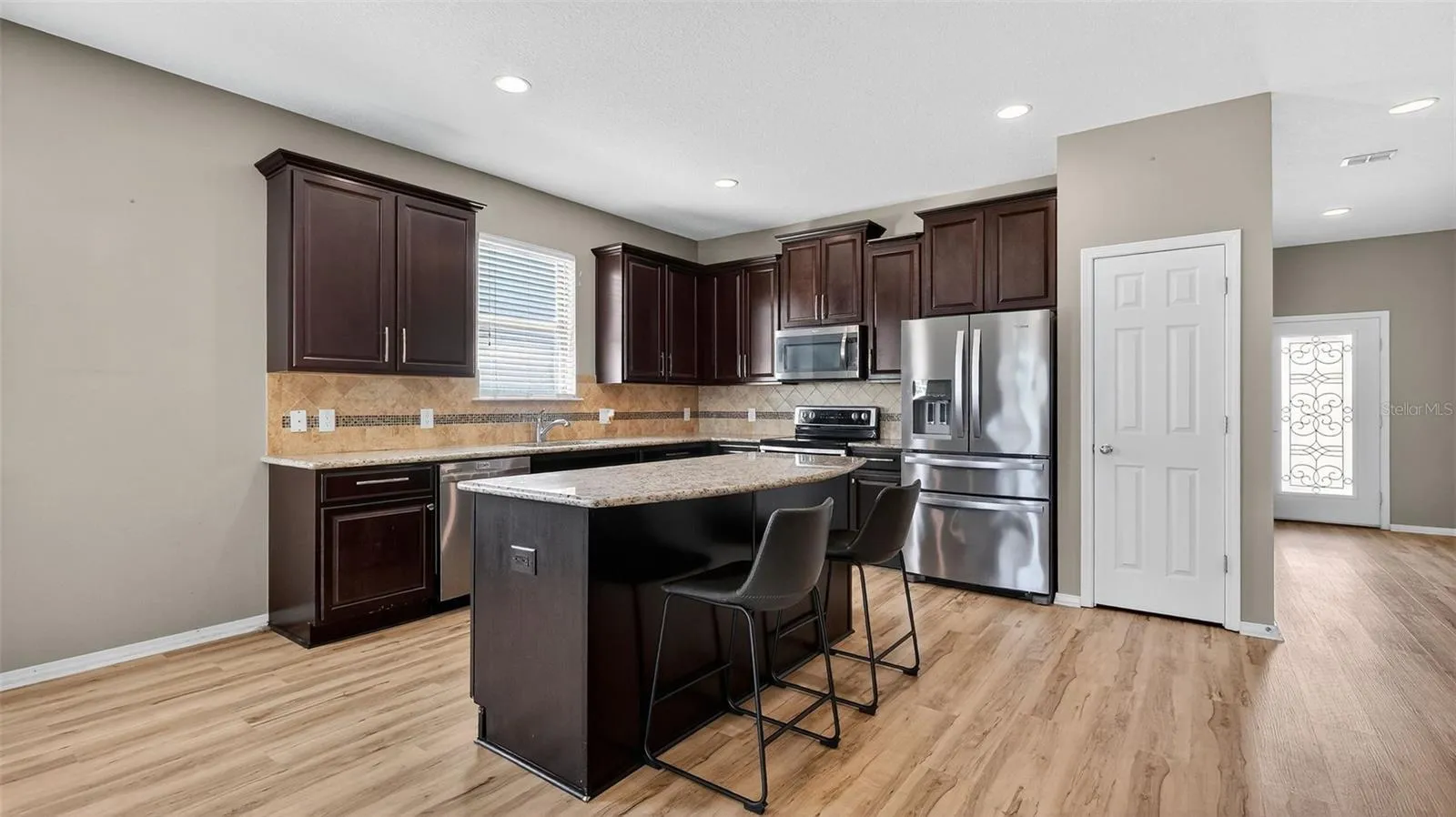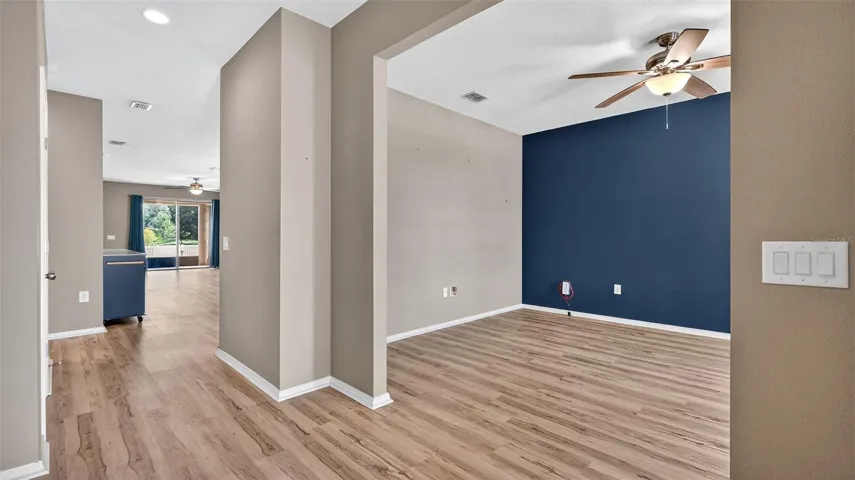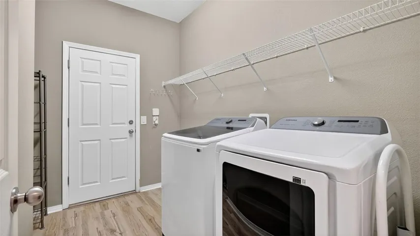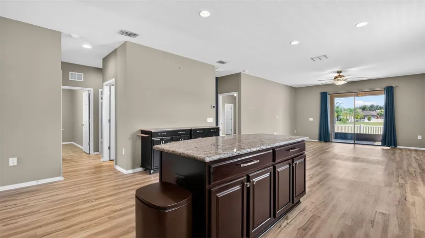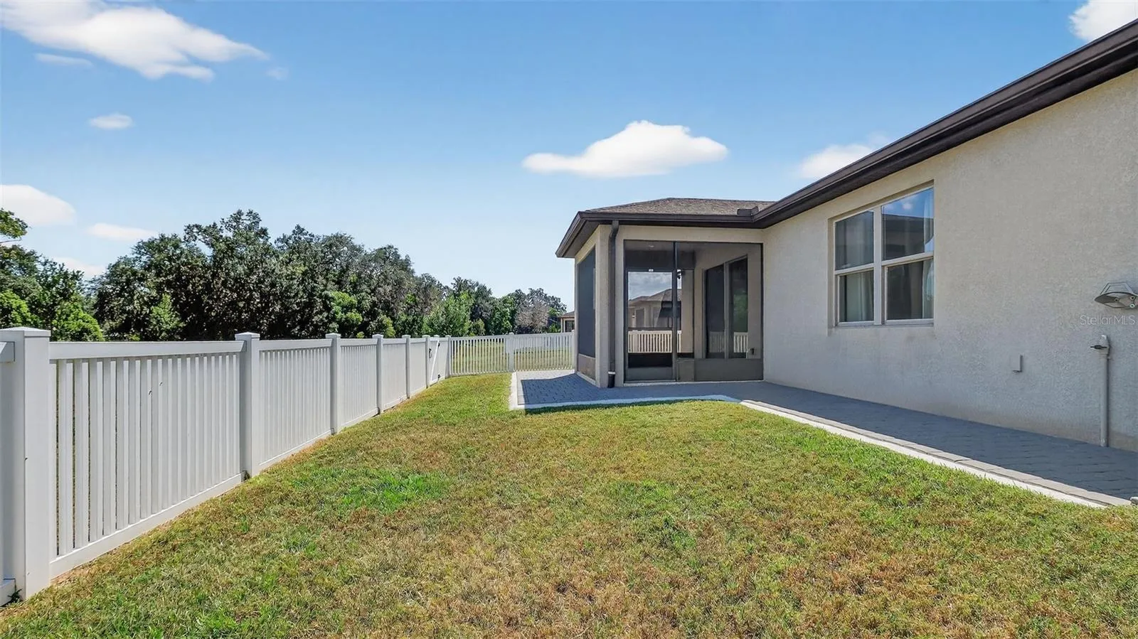 One or more photo(s) has been virtually staged. PRICE REDUCED!!! Welcome to this beautifully maintained 3-bedroom, 2-bathroom home with a versatile flex room, located in Trillium. Take advantage of an assumable mortgage at just 2.875%—a rare opportunity for qualified buyers! Step inside to find a bright open floor plan, enhanced by premium luxury vinyl plank (LVP) flooring throughout. The kitchen features granite countertops, stainless steel appliances, and custom brushed nickel hardware on all cabinetry, offering both style and functionality. Enjoy true privacy with NO front or rear neighbors. The backyard overlooks a retention pond, while front overlooks an open field, which is perfect for watching sunsets from your front porch. Watch the sun rise from your screened in back porch while enjoying a cup of coffee. The backyard is fully fenced in with beautiful brick pavers. The extended garage has epoxy floors and custom storage systems. Newer Trane AC. Smart home features include a hardwired Ring doorbell, hardwired Ring exterior cameras with floodlights, and smart lighting throughout for customizable ambiance. This move-in-ready home blends comfort, smart tech, and energy savings in a prime location. Close to the Parkway for a quick and easy commute to Tampa. Trillium offers a beautiful zero entry community pool and a playground! Low HOA and NO CDD! Schedule your private tour today!