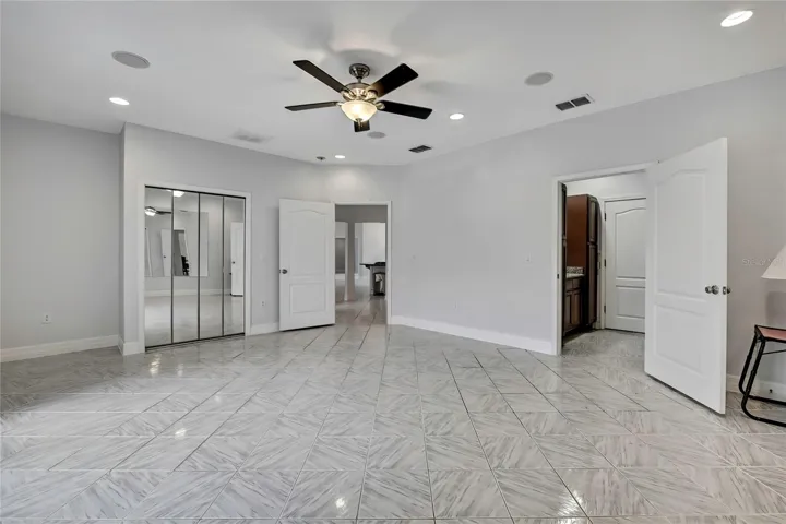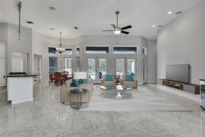 One or more photo(s) has been virtually staged. This is the first time this home has been offered for sale! You will find the choices of were to live in this lovely large bright home are limitless! The rooms flow seamlessly into one another. The sun comes pouring thru the beautiful large windows and french doors. Grand entryway and high ceilings will leave you breathless. The kitchen with its large chef style gas stove will make cooking a breeze. Large island to entertain family or guest. Five bedrooms that are huge two of them have private patios off of them. This home could easily be considered to have several master suites as 3 of the large bedrooms have bathrooms attached to them. This home has been in the same family since it was custom built in 2007. The garage is huge and plenty of space for your toys. The lanai and pool area are huge. The pool is 14x 28 pavers all around out door shower. No rear neighbors. Nice flat lot and very easy to mow. Very desirable location!