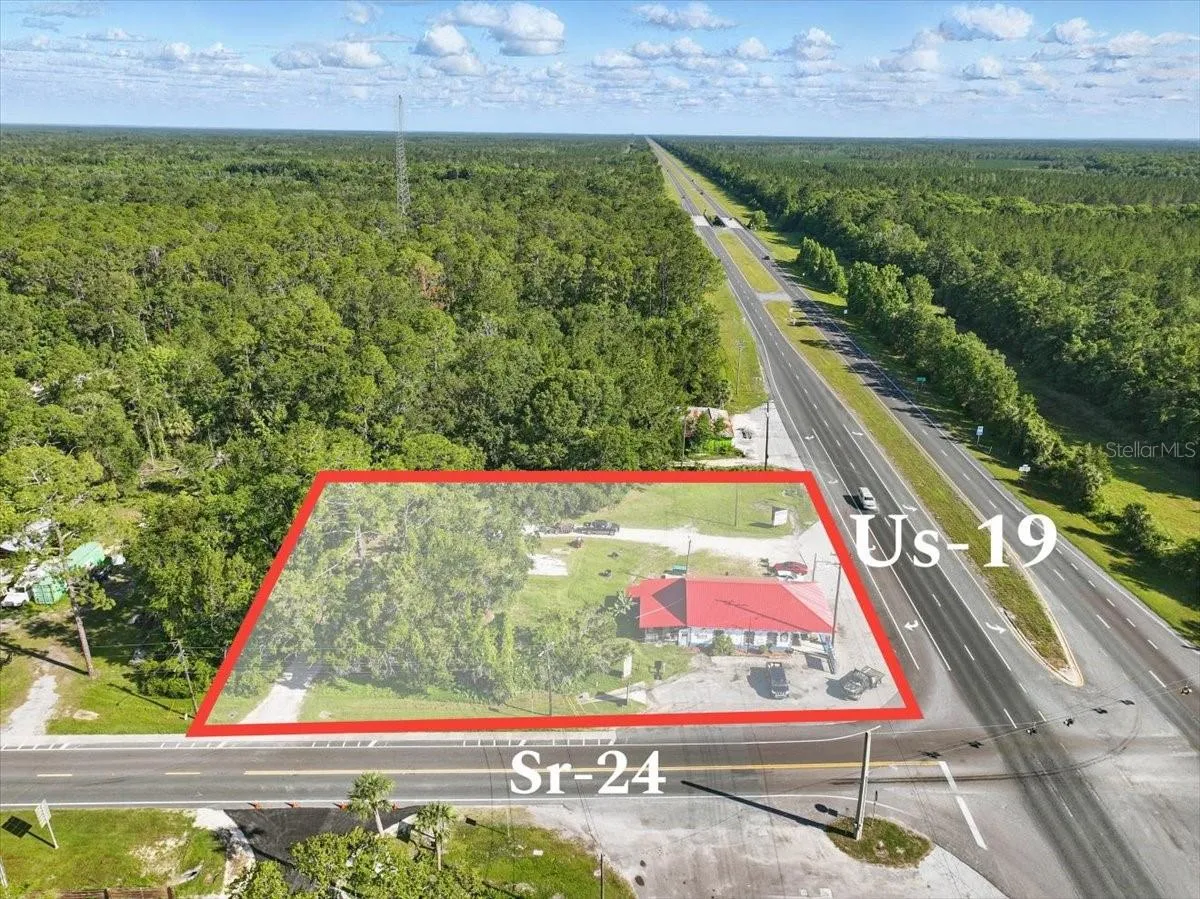 The iconic Herschel’s Quick Stop is prime high visibility right on the corner of 24 (road to Cedar Key) and US Hwy 19! Zoned for C-1 (allowed uses list in documents). Flood zone X, has no water issues and has never flooded. This gem has been serving customers on their way to Cedar Key and points north and south on US 19 since the 50’s! This excellent high traffic profile commercial building has been approved for use as a gas station, currently a very popular convenience store serving food and a bait shop. Use your vision to see all the possibilities for future use. Beautiful property and also included is the building and 1.8 acres just to the north of it! Total of 3 acres MOL. It’s perfect for a convenience store/gas station, service based operation, or entertainment center! There’s parking to the side and front, so plenty of room for your vision of this versatile property.