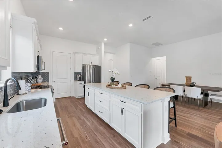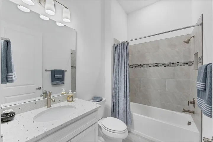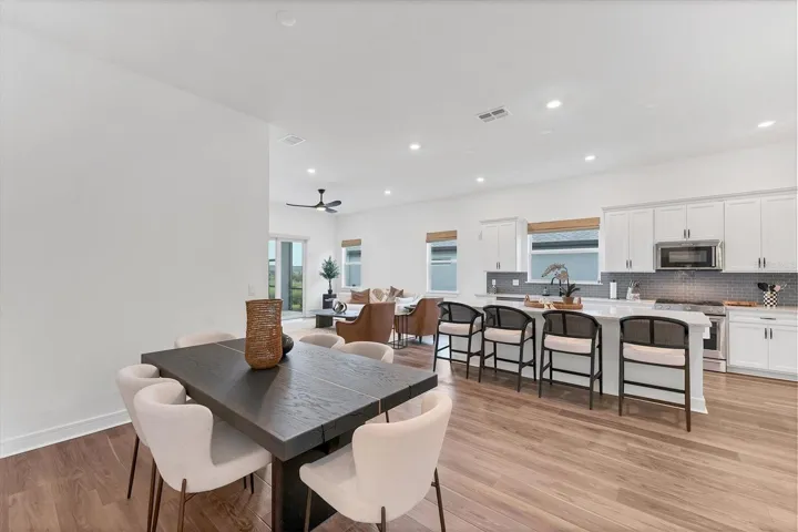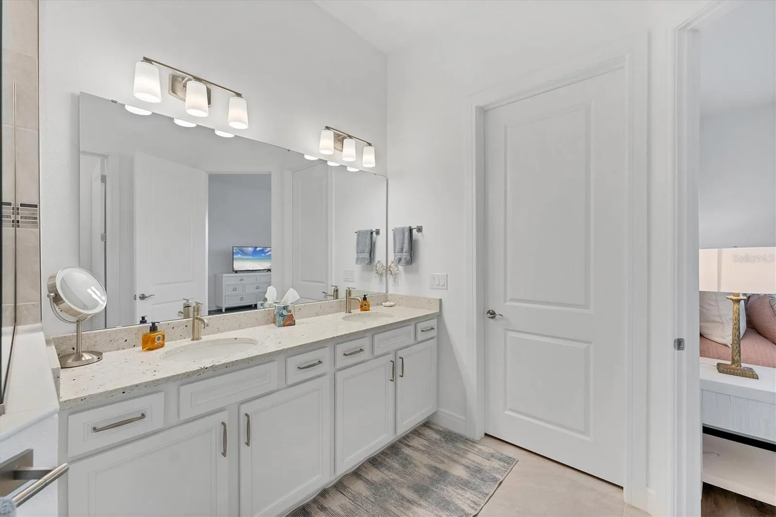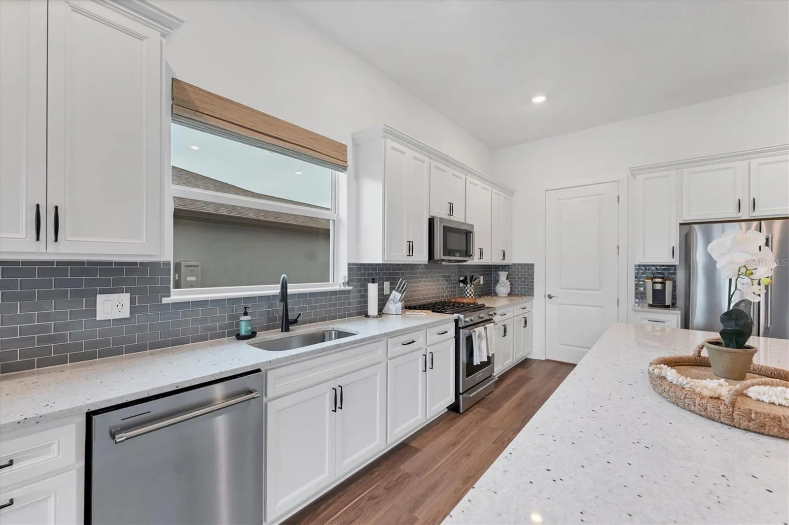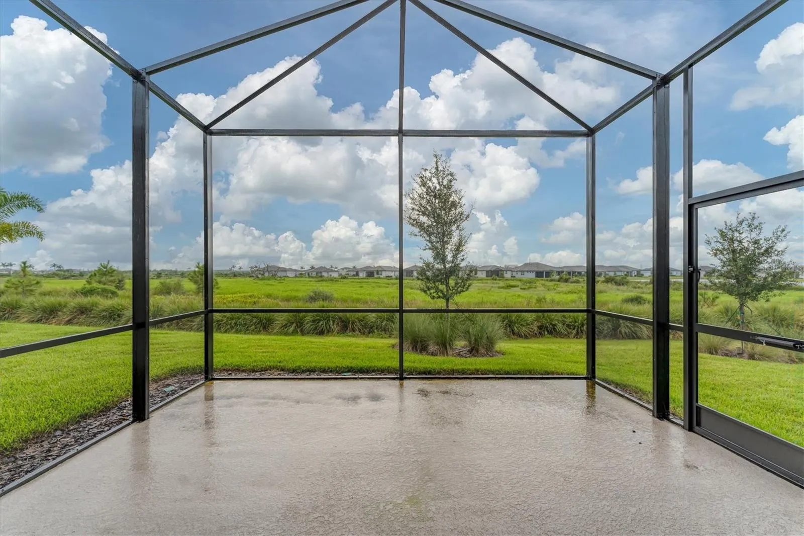 Frankly, this home was rarely used since purchased! But the owner relished the lifestyle and immediately built bigger! This MAINSTAY floor plan is in the center of the gated 55+ community of Del Webb Bay View. This 2BR/2BA + Den home offers 1,972 sq ft of luxury living with hurricane impact windows/doors, smart home security (pre-paid monitoring through Q1 2027), in-wall pest control, and transferable warranties. The gourmet kitchen features KitchenAid appliances, quartz countertops, and an oversized island. Enjoy luxury vinyl plank flooring throughout (no carpet), a den with French doors, and a spacious primary suite with walk-in closet and spa-style bath. Relax on the extended screened lanai with peaceful conservation views. The extended garage includes epoxy flooring and golf cart space. Resort-style amenities include a clubhouse, fitness center, pools, spa, pickleball, tennis, and bocce courts. Just 1.5 miles to I-75/I-275 with easy access to beaches, airports, shopping, and dining. Seller offering ONE YEAR PAID HOA!