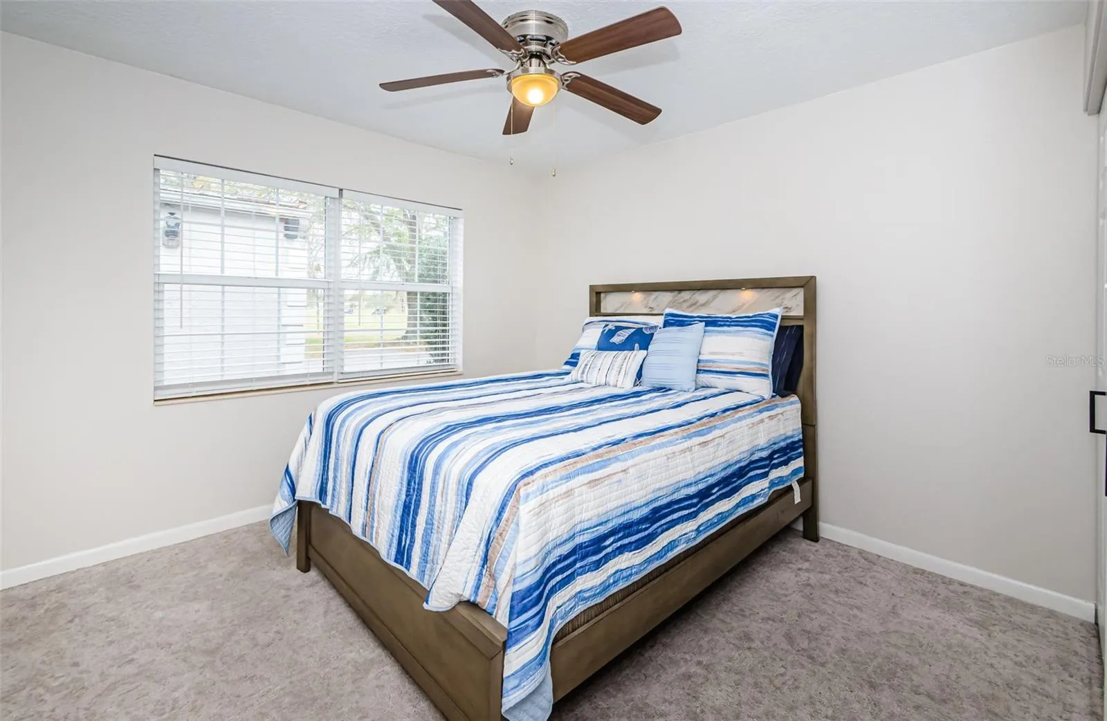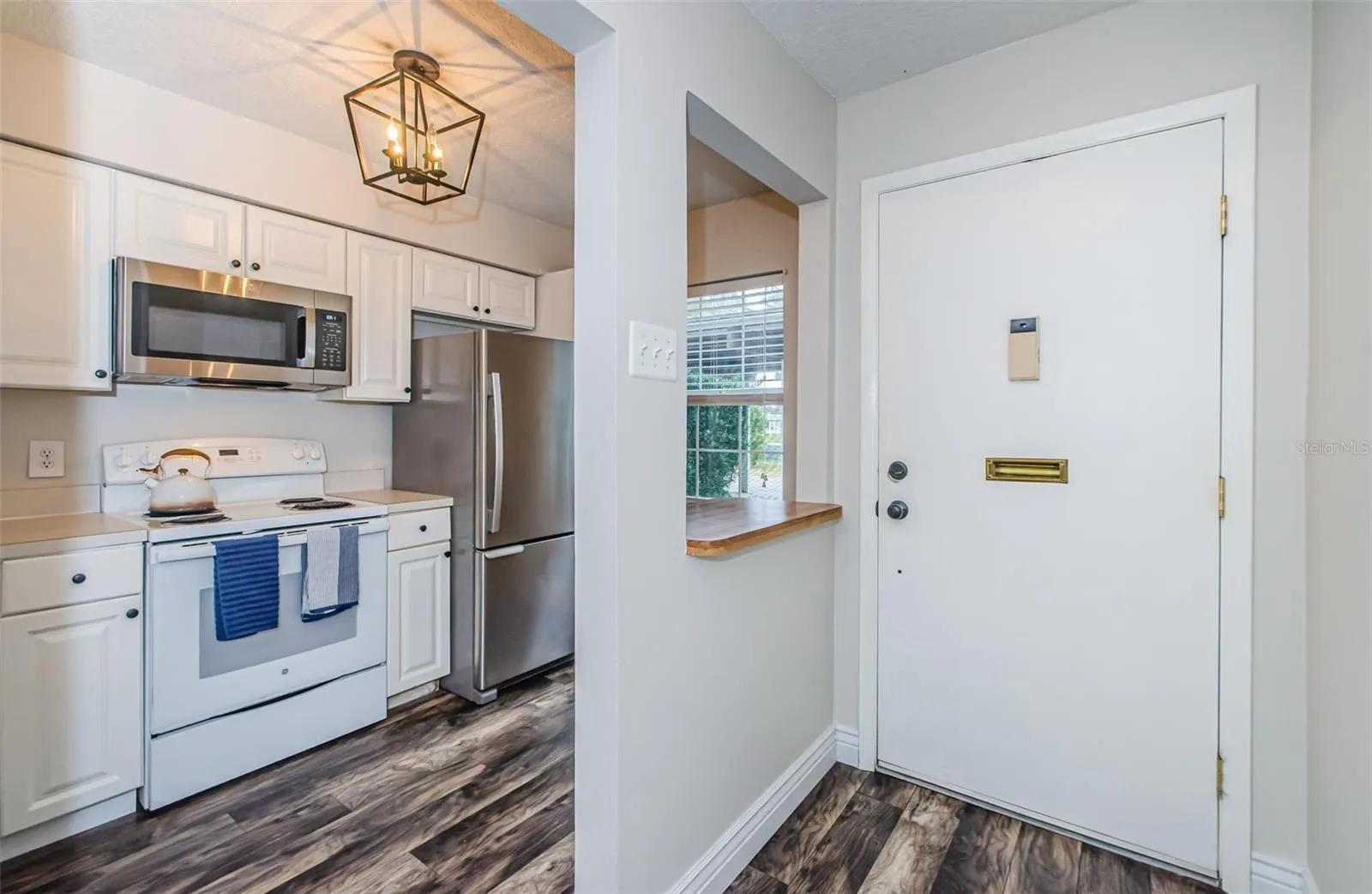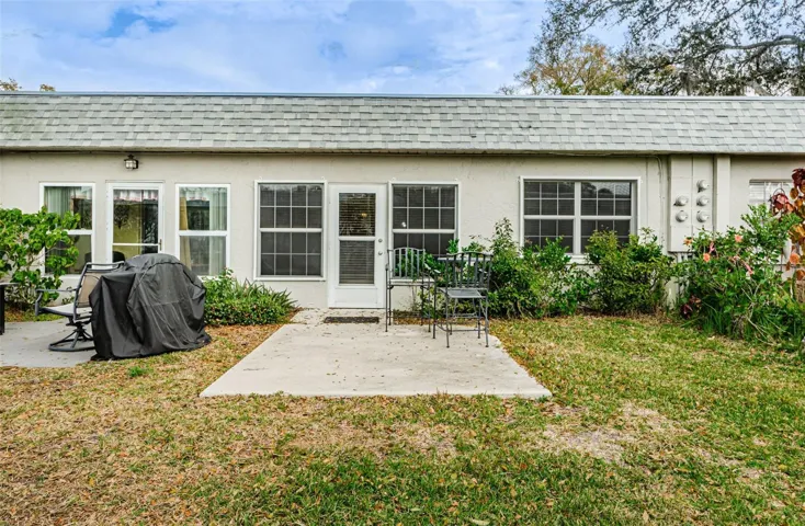Welcome to low-maintenance Florida living in the guard-gated Seven Springs Golf & Country Club. This clean, well-kept 2-bedroom, 2-bath condo offers a functional layout, updated finishes, and one of the best locations in the community — just a short walk to the clubhouse, with a quiet, private backyard where golfers won’t be passing by all day. Inside, you’ll find wood-look vinyl plank flooring in the main living spaces, a bright white kitchen with updated cabinetry and pass-through bar, and a cozy living room that opens to the enclosed Florida room — ideal for relaxing, working, or enjoying views of your private backyard behind. The primary suite features double closets and an en-suite bath with step-in tiled shower, while the second bedroom and full guest bath offer comfort and flexibility. Golf ball-resistant windows have been added for extra peace of mind. The monthly condo fee includes nearly everything — water, sewer, trash, cable, internet, pest control, building insurance, and exterior maintenance — leaving only a small electric bill. No major assessments are pending, a rare advantage in today’s market and a standout value compared to other condo communities. Enjoy full access to the clubhouse featuring two resort-style pools, a lively poolside bar, daily dining specials at the on-site restaurant and bar, and a full calendar of social activities and events. Stay active with pickleball and tennis courts, a modern fitness center, and optional golf memberships. The community offers two 18-hole golf courses, driving range, putting and chipping greens — but golf is not required as part of your membership. The neighborhood is quiet, beautifully landscaped, and extremely walkable, offering the ideal blend of privacy and social connection. Located just off SR 54, this condo is close to everything that matters — including the newly constructed Trinity Medical Center, the new VA Clinic in New Port Richey, shopping, dining, and daily essentials. Tampa International Airport is only 35 minutes away, making seasonal travel or visits from family easy.