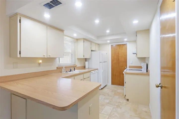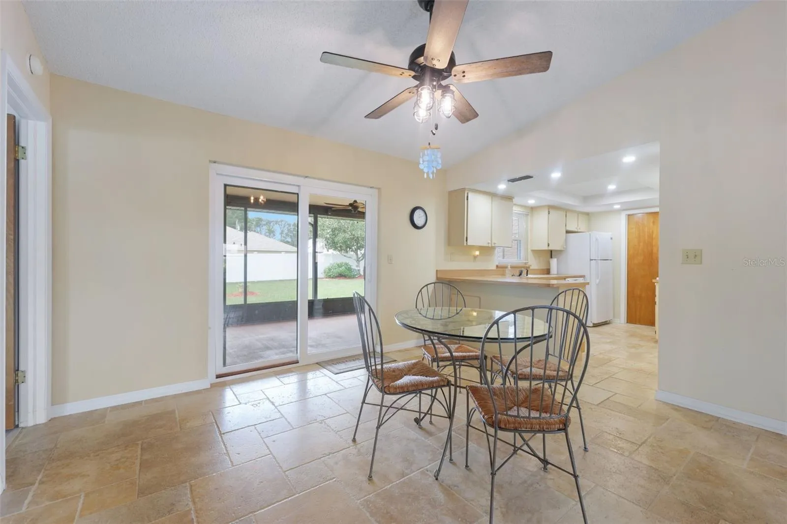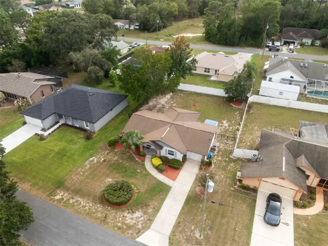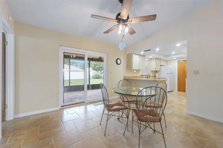 Beautiful and affordable!! This 2-bedroom 2 full bath SPLIT plan has so much to offer at the price point. Great curb appeal! NO flood insurance required! NO HOA fees! Over 1700 sq ft of total living space to enjoy. This home has been well cared for with NEWER roof, windows, sliders and gorgeous TRAVERTINE TILE throughout. The VAULTED ceilings make this floorplan feel even more spacious. Living room and kitchen flow nicely together with a separate dining area, perfect for entertaining. The kitchen has a large pantry, breakfast bar and plenty of counter space. Both bedrooms are good size. The primary bedroom is a true ensuite with a walk-in closet. The one car garage is oversized for easy parking and extra storage. Step outside to the huge, SCREENED LANAI that overlooks the backyard, just under 1/4 of an ACRE. Completely FENCED! Nicely landscaped! A true ready to move in! Spring Hill is a popular area located just minutes from State Road 50, The Suncoast Parkway and some of Florida’s top beaches and parks. Schedule your showing today!