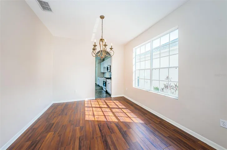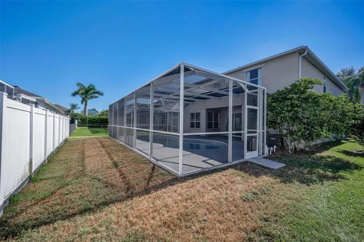 Wood laminate flooring flows throughout much of the home, adding a modern touch. Step outside to enjoy the covered lanai, screened-in pool, and tropical landscaping—perfect for relaxing or entertaining.