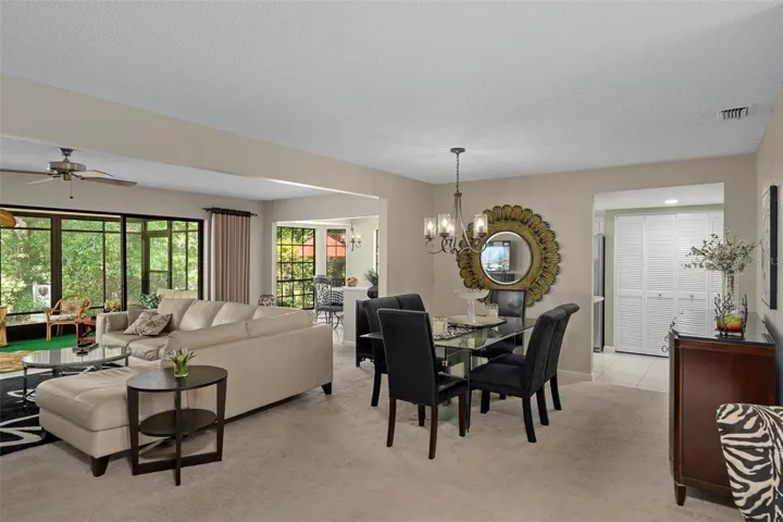 How about starting every morning with an adventure right outside your door? Every day will make you feel like you’re on vacation. This furnished two bedroom, 2 bath single family home has over 1700 feet and its ready to welcome you home. Open floor plan with a golf course view of the 5th hole of the Lakes. Home features a 22.5 x 12 foot lanai for entertaining or step out onto the outdoor patio where you can watch a game of golf. The eat in kitchen has a Bay window with views of the Florida fauna and plenty of cupboards with large pantry if you like to cook; but you won’t need to as you can have lunch or dinner at the onsite restaurant that serves great food. The oversize master bedroom ensuite has two walk in closets, double sink countertops and a step-in shower. Timber Pines is a 55 plus community with 63 holes of championship golf, resort style pools and a world class fitness center that’s filled with state-of-the-art equipment. There is an abundance of amenities here. It’s a community where strangers turn into friends over a game or a class. Want to learn how to play Pickleball? Tennis? How about joining an exercise class? Timber Pines has Low HOA fees. The grounds of the community are impeccable and you will be proud to call this place home. New roof in 2023. Wash Machine and dryer included. Cable and internet included. Call for your private tour of this home today!