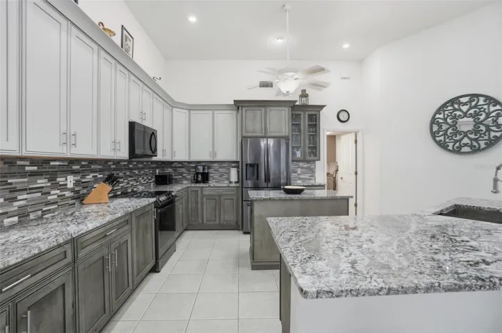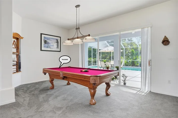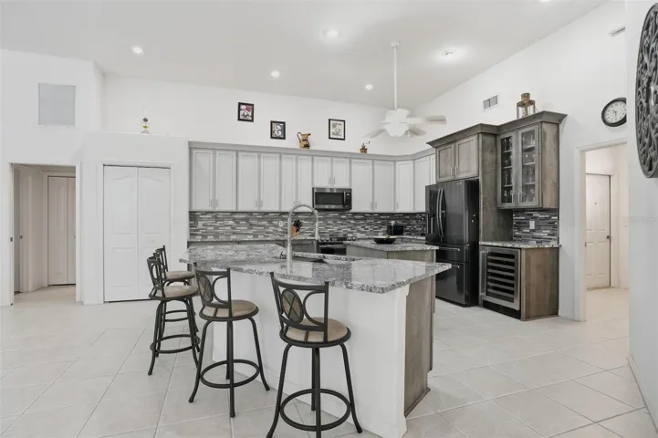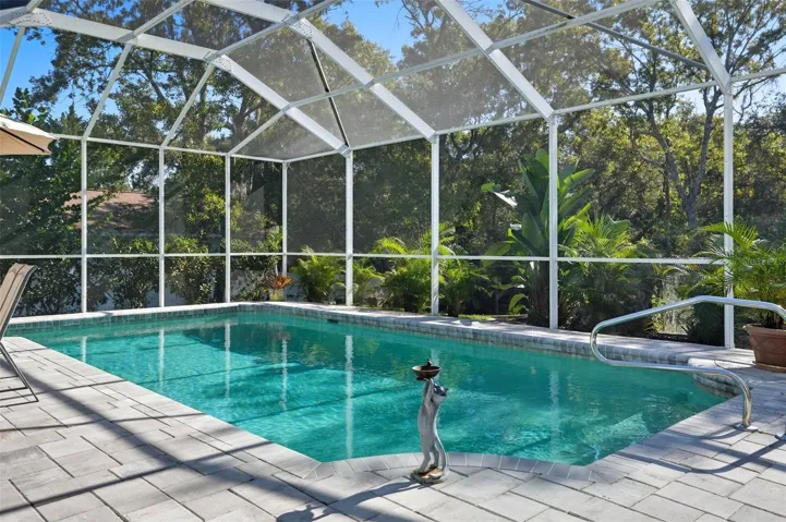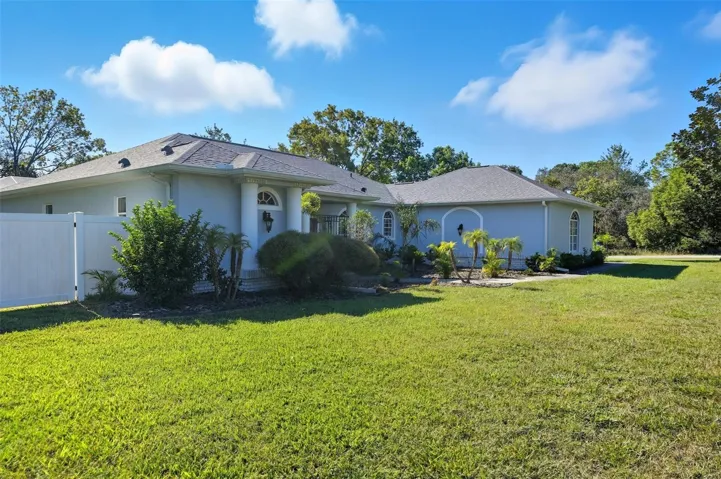 Recent upgrades add peace of mind, including a new roof in 2024, a home generator, a hot water heater (approx. 1 year old), and a sprinkler well to keep the grounds lush year-round. Inside, the home welcomes you with a formal living and dining area, designed to showcase tranquil views of the backyard oasis. Just off the main entrance, you’ll find an oversized private bedroom retreat complete with its own bath and a brand-new sauna—perfect for relaxation after a long day. The updated, upscale kitchen is truly a chef’s delight, offering abundant counter space, a sitting area, and a wine cooler. Overlooking both the generous family room and the cozy breakfast nook, this kitchen is the heart of the home, seamlessly flowing toward the pool and outdoor spaces. Two additional bedrooms and a private full bath are tucked away on the opposite side of the home, providing the perfect layout for privacy and comfort. Step outside, and you’ll instantly feel the serenity. A sparkling pool area sets the stage for Florida living, while a waterfall and meandering stream flow gently toward a charming gazebo—an idyllic spot for peaceful mornings, intimate gatherings, or evening of relaxation. The detached garage offers endless opportunities—ideal for a workshop, hobby space, or easily converted into a spacious in-law suite, the garage has its own driveway. Every inch of this property has been thoughtfully designed for enjoyment, from the lush landscape to the fully fenced yard with 3 gates for low-maintenance vinyl fencing.