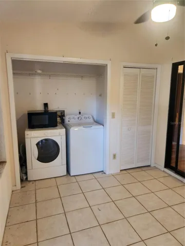 2 bedrooms, split plan . 2 full baths. Front porch, w/ small storage area. End of cul de sac. Kitchen with eating area. Combo living & dining room. Screen room overlooks the treed backyard. Plenty of closet space. Washer and dryer. Immediate occupancy. WELL KEPT AREA. LITTLE TRAFFIC GOING BY. POOL & CLUBHOUSE.