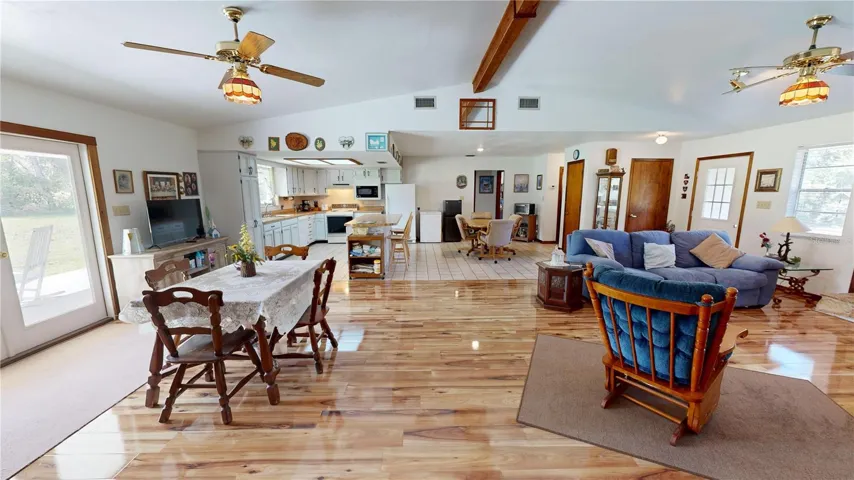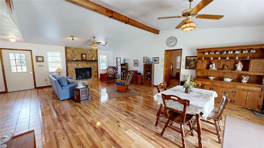 Country living AND close to the Suncoast Parkway and all amenities! This charming 3 bedroom, 2 bath ranch home has been lovingly built and cared for by one owner. Open floor plan with living, dining, kitchen, split bedroom plan, large covered rear porch overlooking an expansive lot of 5 acres. There is a 40′ x 21′ detached garage/workshop and an additional pole barn to store your lawn equipment, atv and all your toys. Plenty of room to grow, private yet close to everything, and future potential to develop the property into a more intensive use due to location. Must see this one today!!