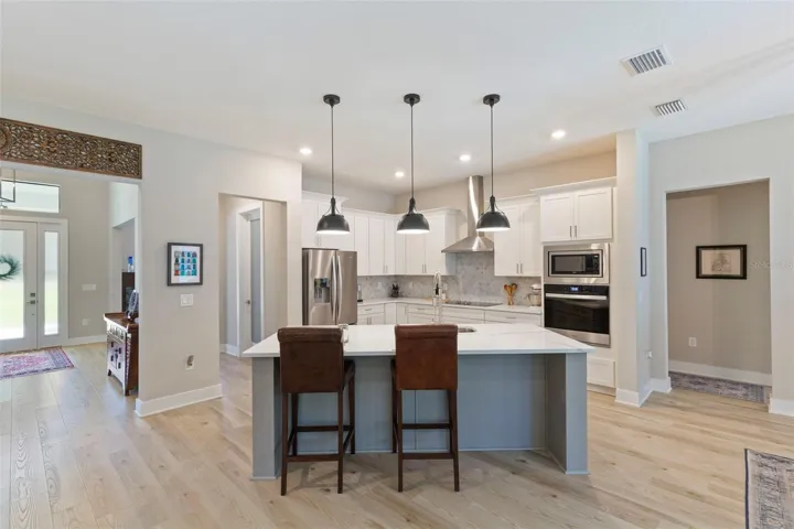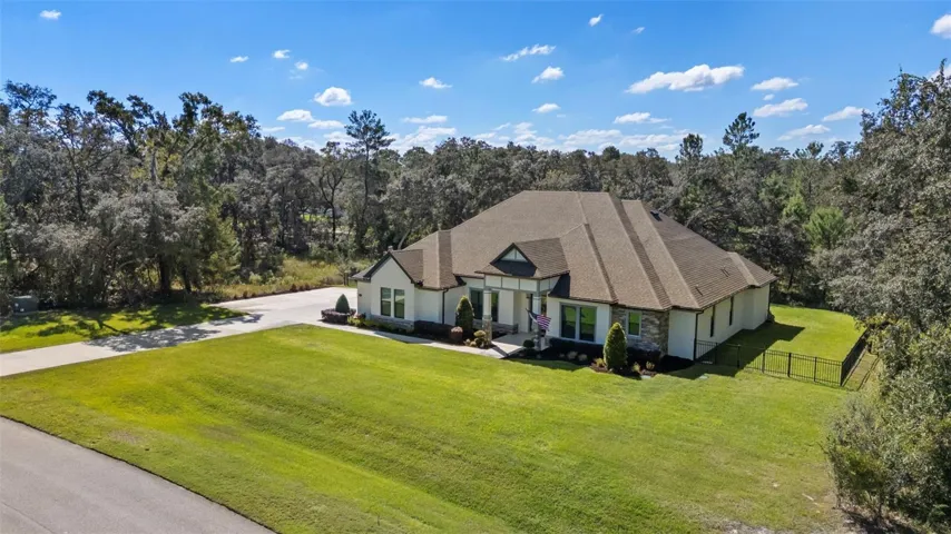Stunning Equestrian Estate in the heart of Florida’s Nature Coast. Tucked within the premier Gated Equestrian Estate community Bella Terra, in the heart of Florida’s Nature Coast, this MOVE IN READY home radiates elegance. With lofty ceilings, a grand entrance, soft neutral tones, and abundant natural light, it exudes model-home charm. Luxury vinyl plank flooring graces the living areas, offering both durability and sophistication, while the expansive floor plan provides a wealth of flexible space, ideal for large families or those who delight in hosting gatherings. The heart of this home lies in its exquisite kitchen, a culinary haven adorned with lustrous Quartz countertops and Shaker cabinets crowned with elegant molding. A modern cooktop stove, built-in convection oven, microwave, and a brand-new dishwasher, installed in October 2025, elevate the art of cooking. Copious counter space and a walk-in pantry ensure effortless organization, while the kitchen’s open design overlooks the great room and the broad backyard, fostering seamless connection between spaces. The primary bedroom and bathroom form a serene haven of peace and tranquility, offering a luxurious retreat with soothing ambiance and elegant design. Two distinct office spaces offer versatility for work or creative pursuits, catering to the demands of modern life, and the three additional bedrooms, thoughtfully arranged in a split plan, offer exceptional privacy and comfort for family or guests. Step outside to a screened in lanai enhanced with an outdoor kitchen and fenced yard, where family and cherished pets may play freely amidst nature’s splendor. Here, one can bask in the tranquil beauty of the surroundings, enveloped by the serenity of quietude. This expansive estate, set upon one of the largest lots in the neighborhood—spanning an impressive 5.20 ACRES—offers boundless opportunities for outdoor activities. Envision a sparkling pool, equestrian stalls, paddocks, or workshops. No horses? No Problem- Design the garden of your dreams in this lush sanctuary! The property is primed for entertaining, with ample room to host grand holiday soirées or intimate gatherings under the stars. Built in 2023 this showcase home features upgrades that include an epoxy-coated screened patio with extra pad, extended irrigation, water softener and purifier, additional parking pad, for all of those holiday guests, and the new dishwasher. Perfectly situated between Highway 19 and the Suncoast Parkway, it offers quick commutes to Tampa or Spring Hill while remaining a serene escape. Minutes from shopping, dining, and entertainment, this golf-cart-friendly community features SIX MILES OF HORSE TRAILS and tranquil streets for walking or biking. This nearly new refined estate blends luxury, space, and serenity, awaiting your vision.