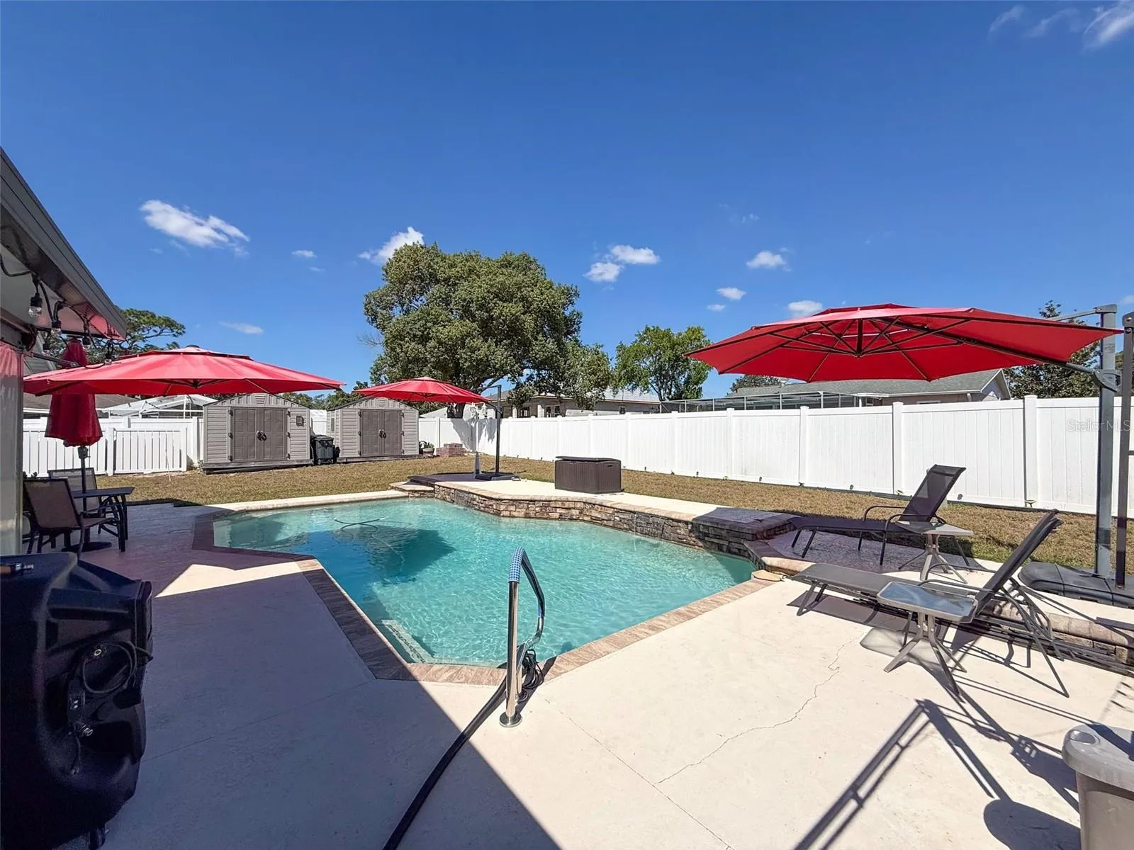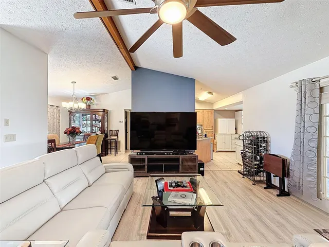 Welcome to this beautifully maintained 2-bedroom, 2-bath saltwater pool home — not too big, not too small, but just right! Step inside to discover a spacious living room and dining area, ideal for both relaxing and entertaining. Both bedrooms are generously sized and feature walk-in closets for ample storage. Enjoy the home’s modern touches — no popcorn ceilings here! You’ll appreciate the vaulted ceilings and the elegant tray ceiling in the breakfast nook. The kitchen and both bathrooms have been tastefully updated, with the kitchen showcasing stylish quartz countertops and quality finishes. This home is designed for convenience and comfort, featuring an inside laundry room and thoughtful upgrades throughout. The oversized two-car garage includes pull-down attic stairs, a utility sink, workbench, and even a skylit bump-out for added functionality. You’ll also find a Generac generator, hurricane-rated windows, security camera system and all kitchen appliances — plus the washer and dryer — included. Step outside to your private oasis. The enclosed lanai and the 15×15 covered back porch provide the perfect spaces to relax, read, or enjoy the tranquil backyard. And of course, the sparkling saltwater pool adds the finishing touch to this peaceful retreat. This home truly has it all — comfort, style, and peace of mind. Don’t miss the chance to see it for yourself!
