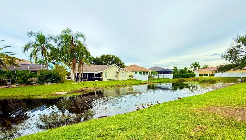 Tucked away on a quiet cul-de-sac in a newer gated community in the Palmer Ranch area, this tranquil and well-appointed home offers the perfect blend of comfort and convenience. Featuring 3 bedrooms, 2 baths, plus a den, the open split-bedroom floorplan is designed for both everyday living and entertaining. The spacious kitchen boasts upgraded 42″ cabinetry, granite countertops, and a breakfast bar that seamlessly connects to the living and dining areas, while the den offers a private retreat tucked off to the side. Tile flooring flows through the main living spaces, with low-maintenance laminate in the bedrooms. Step outside to your private patio overlooking a serene pond, where you can relax and enjoy the abundance of birds and wildlife from your fully fenced backyard haven. This home is equipped with numerous upgrades, including a high-efficiency 15 SEER HVAC system, programmable thermostat, radiant roof barrier sheathing, and energy-saving double-pane low-E windows and sliding glass door and hurricane shutters for peace of mind. If it is a pool you desire, there is room for one here (sketch attached). This upscale community of 49 homes showcases timeless curb appeal, with each home featuring brick paver driveways and entry walks, elegant stone exterior accents, and durable barrel tile cement roofs. The low HOA fee includes gated entry, grounds maintenance, lawn irrigation, and access to the community playground. Ideally located near I-75, this community is just minutes from world-famous Siesta Key, vibrant downtown Sarasota, and an array of shops, dining, parks, and trails, some just a couple blocks away. Top-rated schools are also nearby, making this home an exceptional choice. Up to 1% of the loan amount for rate buy down or lender credits are being offered specifically for this home