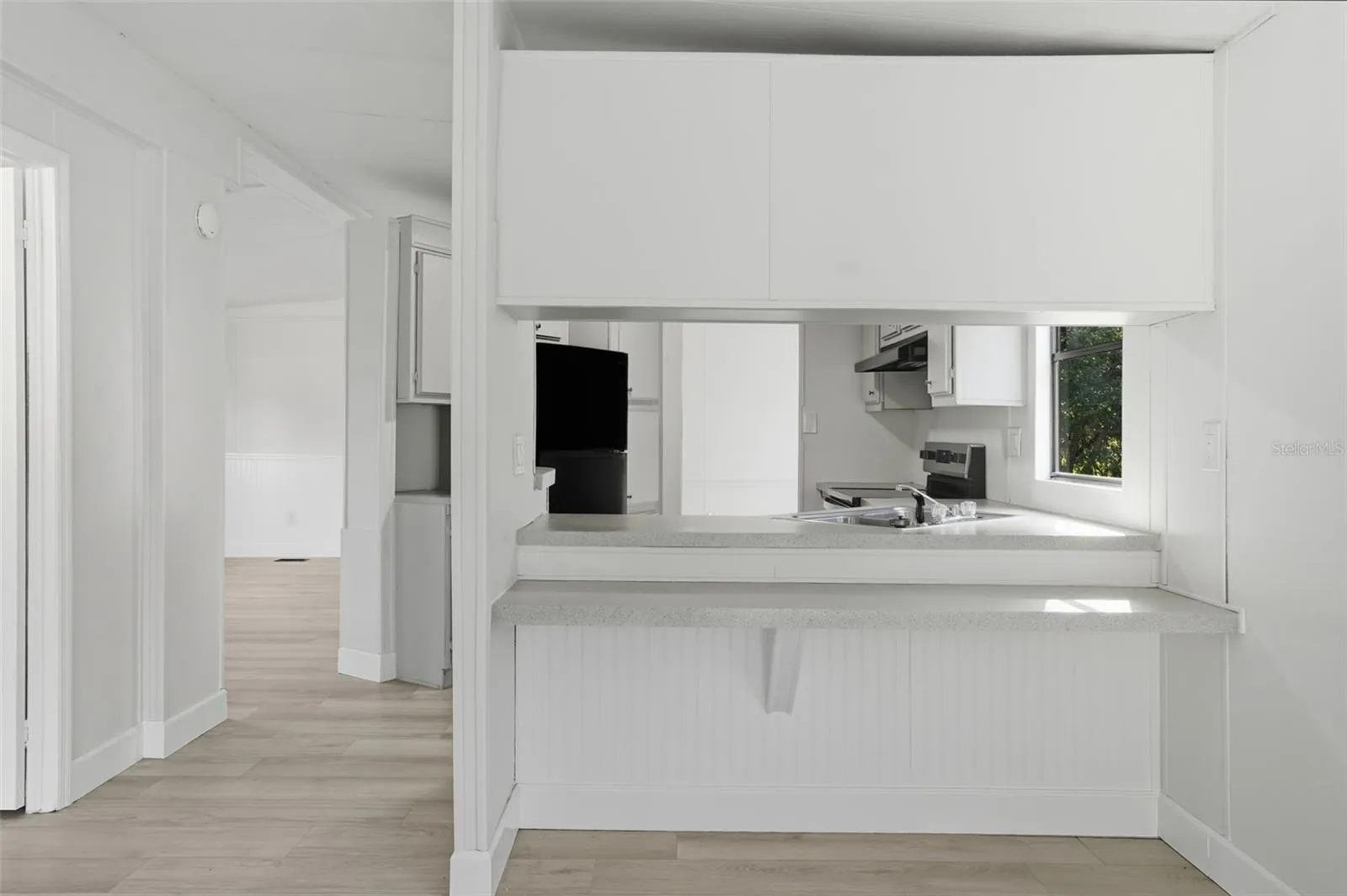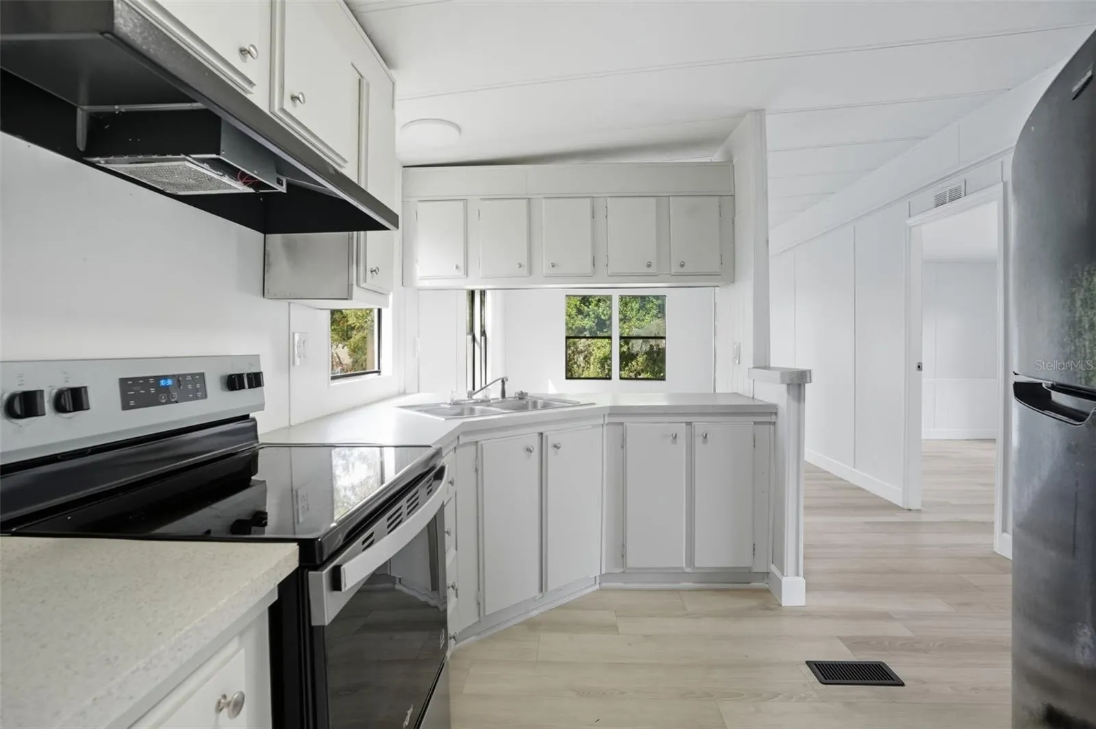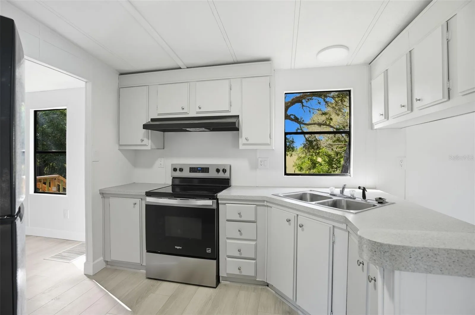 REMODELED 3 bedroom, 2 bath home features a split-floor plan, kitchen with new stainless appliances, a country cow pasture view from the kitchen window, a built-in bar, a laundry room and SO MANY NEW ITEMS: Fresh paint – luxury vinyl flooring throughout – stainless kitchen appliance package – light fixtures – commodes – plumbing lines – electric – roof – skirting – vapor barrier – tie downs