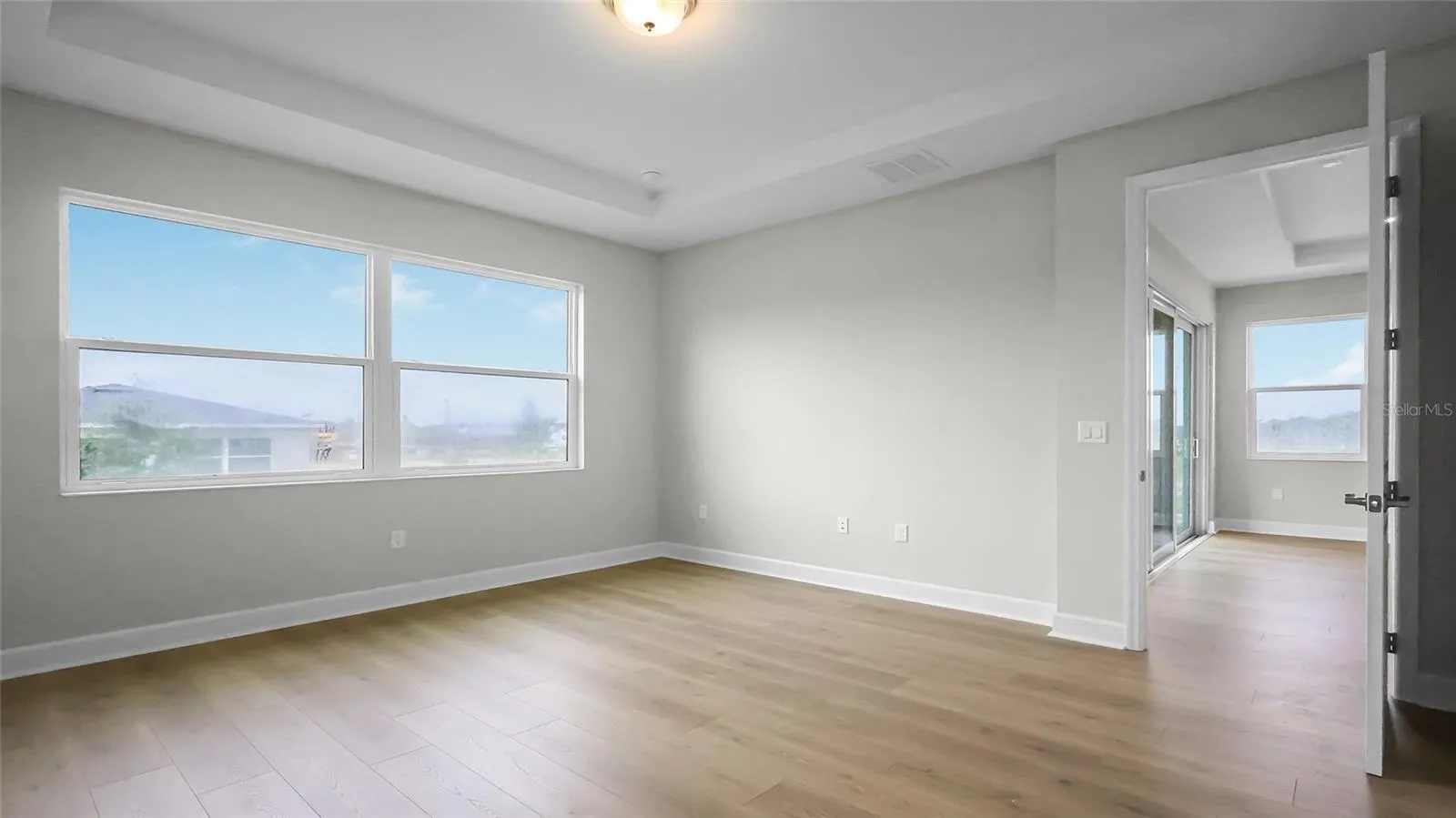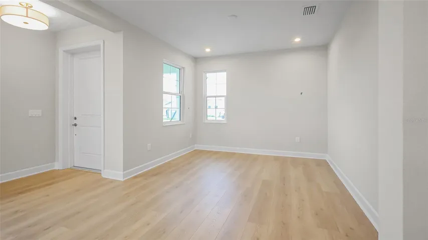 The versatile Flex Room offers endless possibilities, easily transforming into a home office, formal dining area, fitness studio, or additional guest room to meet your changing needs. Laminate wood plank flooring continues into the Flex Room and owner’s suite, while upgraded carpet in Bedroom 2 ensures comfort underfoot.