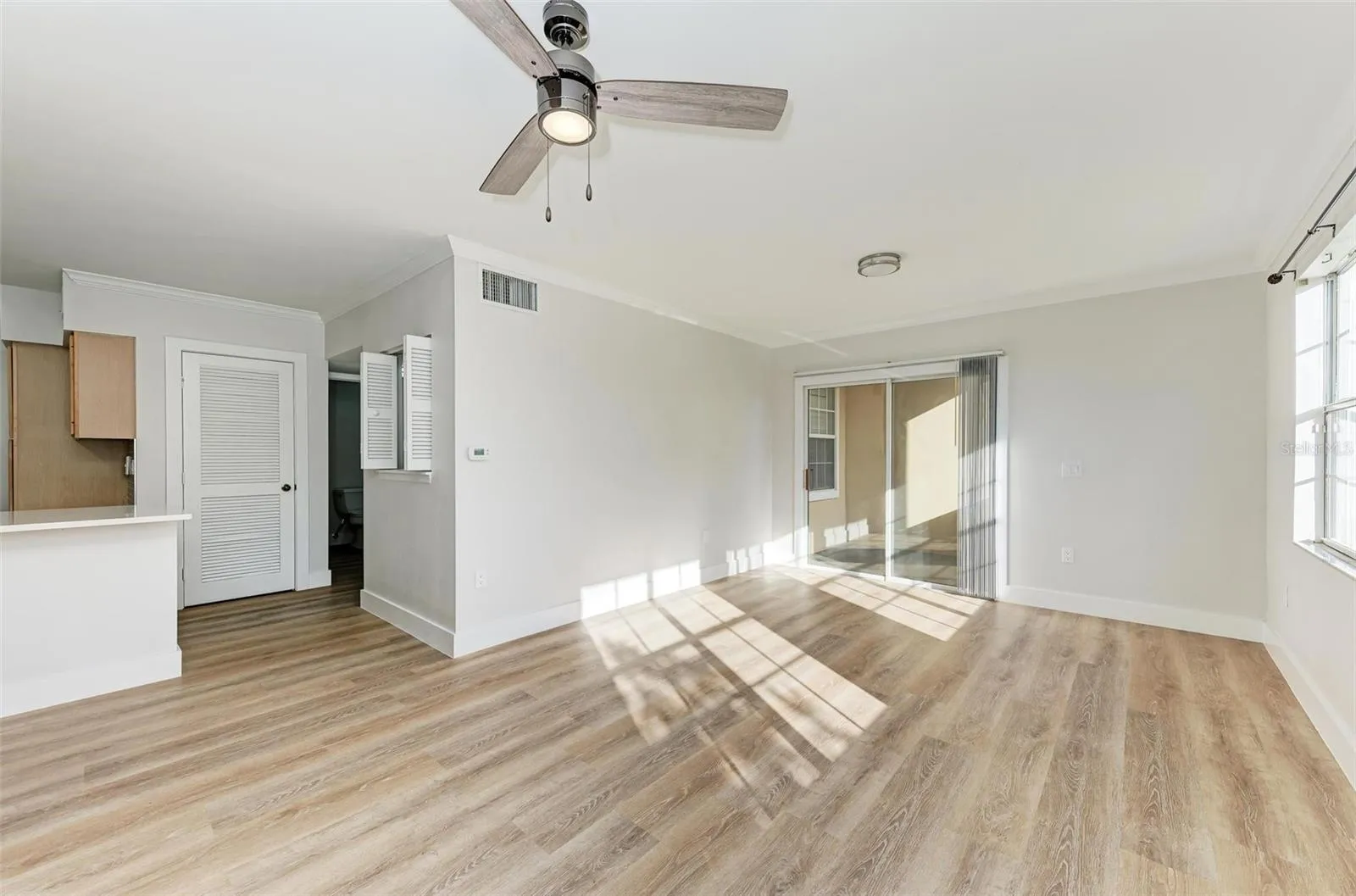 Experience stylish living in this beautifully updated 1-bedroom unit located in a meticulously maintained, gated community just minutes from vibrant downtown. This home features renovated flooring, new appliances, fresh paint throughout, and elegant trim work including upgraded wall detailing and new base molding. The kitchen is equipped with a new tile backsplash, ample counter space, and a convenient built-in desk area—perfect for working from home. A brand-new bathroom adds a touch of luxury, while a new AC system will be installed this week (2025) for year-round comfort. The spacious primary bedroom flows seamlessly into the open-concept living space, with an additional office/computer niche for added functionality. A separate laundry room includes a brand new washer and dryer. Step outside onto your private lanai overlooking a tranquil pond, where you can unwind while watching ducks and native Florida birds. Enjoy resort-style amenities including a heated pool, tennis/pickleball court, fitness center, playground, dog run, and more. New roof already completed. This is Florida living at its finest!