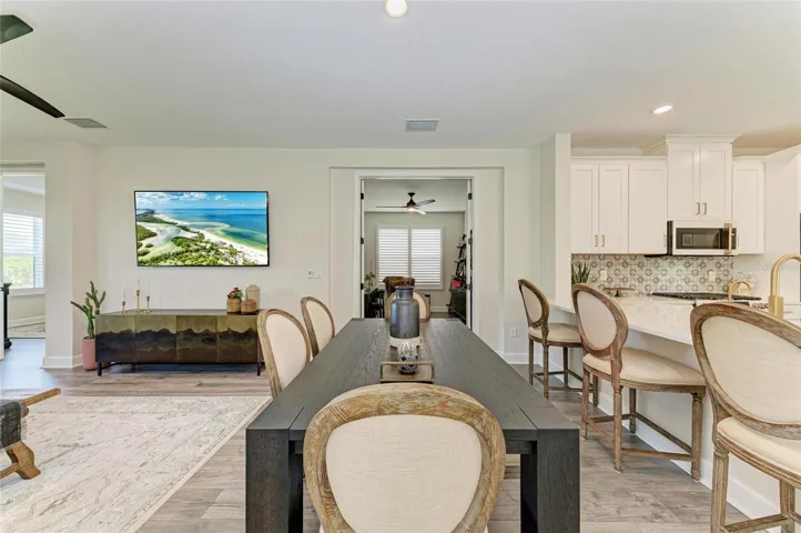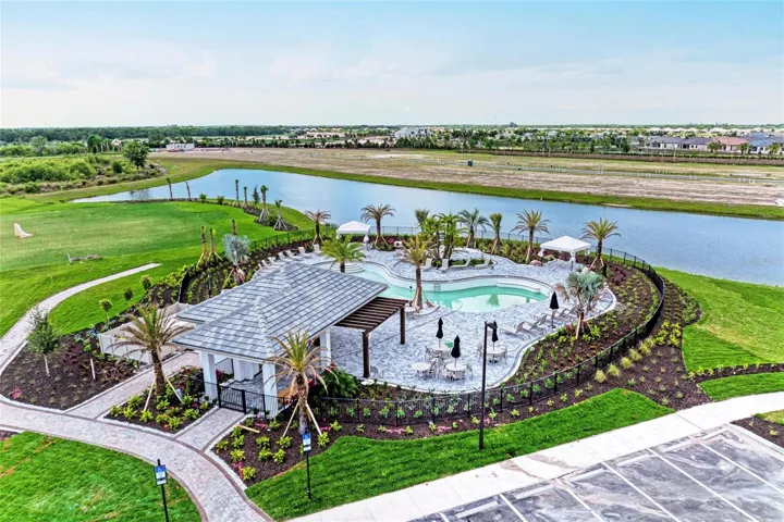Welcome to your dream home in the highly sought after community of Park East at Azario in Lakewood Ranch, Florida. This beautifully designed, single-family residence blends modern elegance with timeless comfort, offering the perfect balance for both relaxation and entertaining. Step into this impeccably decorated and totally upgraded 3 Bedroom, 2.5 Bath home, the spacious open-concept layout is accentuated by modern finishes, designer fixtures, and abundant natural light, creating a avant-garde yet inviting ambiance throughout. High ceilings and stunning architectural details accentuated with an amazing gourmet kitchen featuring stone countertops, custom cabinetry, a large center island, and state of the art GE Cafe Matte Appliances making it a chef’s delight and the heart of the home. The kitchen flows seamlessly to the living and dining areas that are perfect for entertaining guests or relaxing with family. The spacious main suite with oversized windows includes a luxurious spa-like bathroom with dual vanities, and a walk-in shower, along with an expansive custom walk-in closet. Additional two bedrooms are generously sized and perfect for family, and guests. There is also a separate private home office and/or flex room with tons of natural light! Enjoy Florida living at its best with a screened brick paver lanai overlooking manicured landscaping. The outdoor area is ideal for entertaining or simply soaking up the sunshine year-round. This area is also ready for an outdoor kitchen since all the necessary plumbing, electric and gas have been installed.