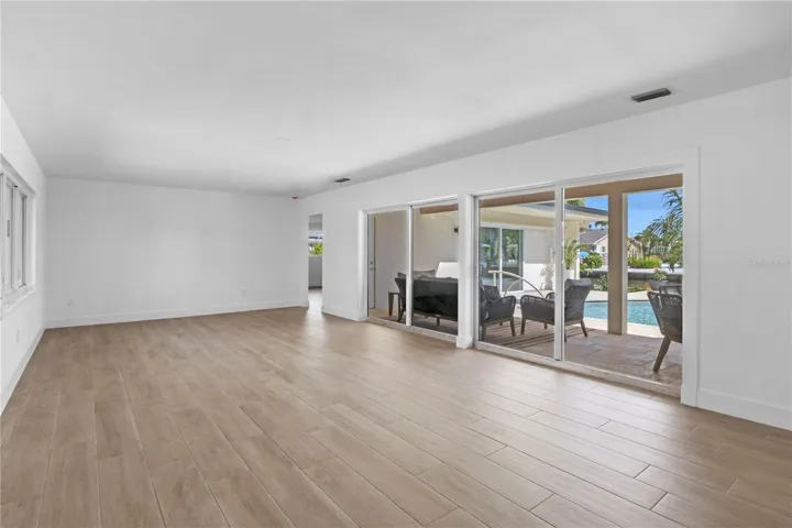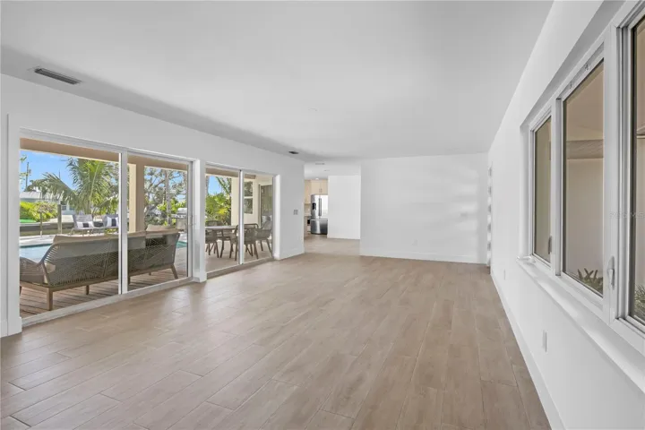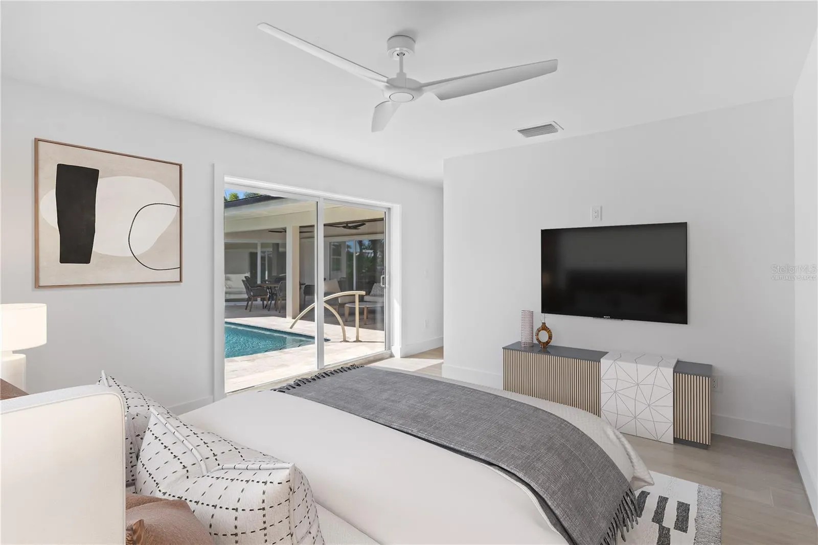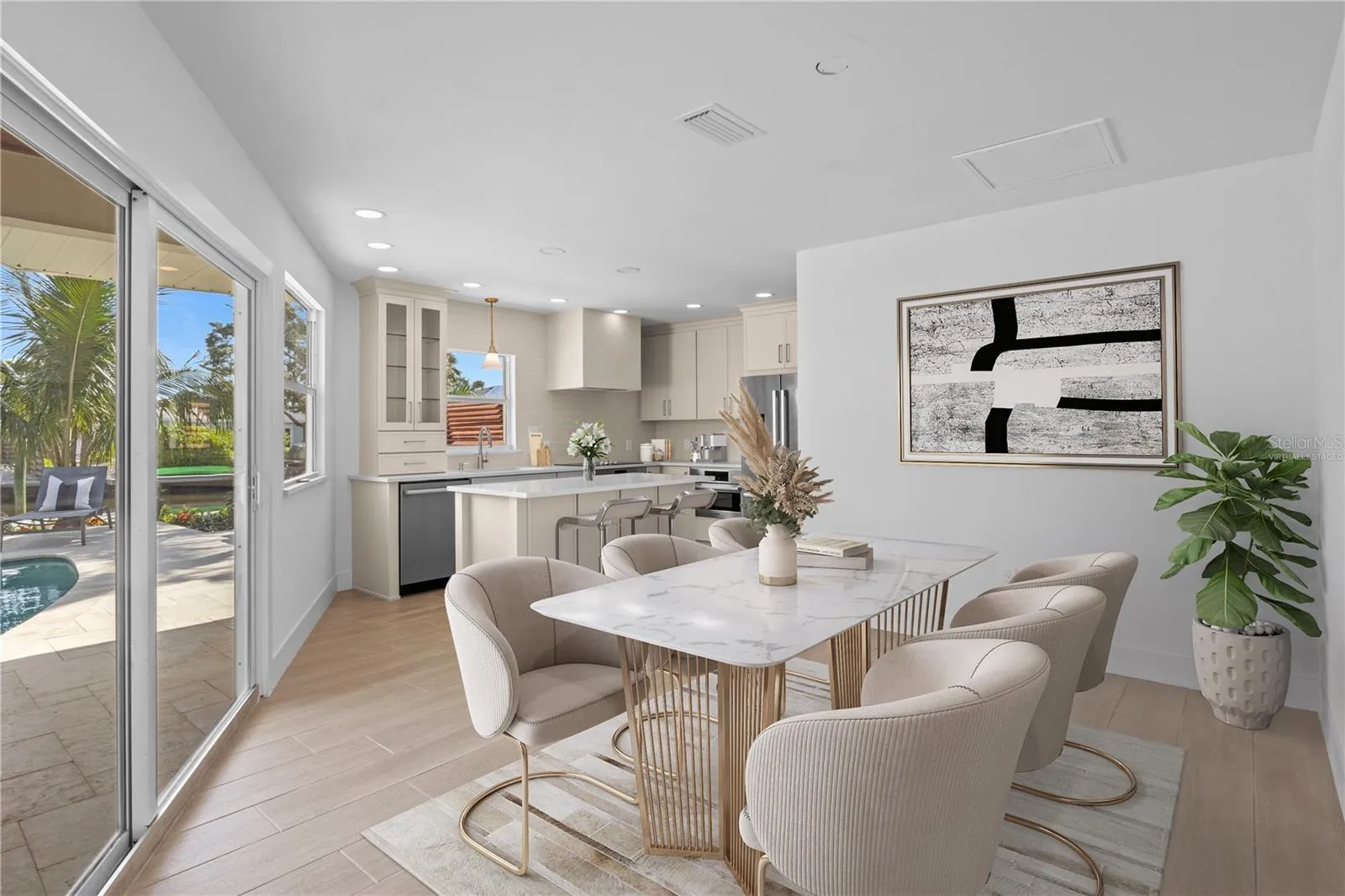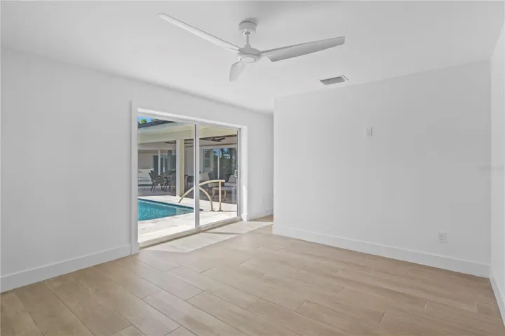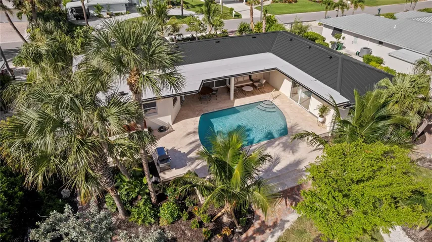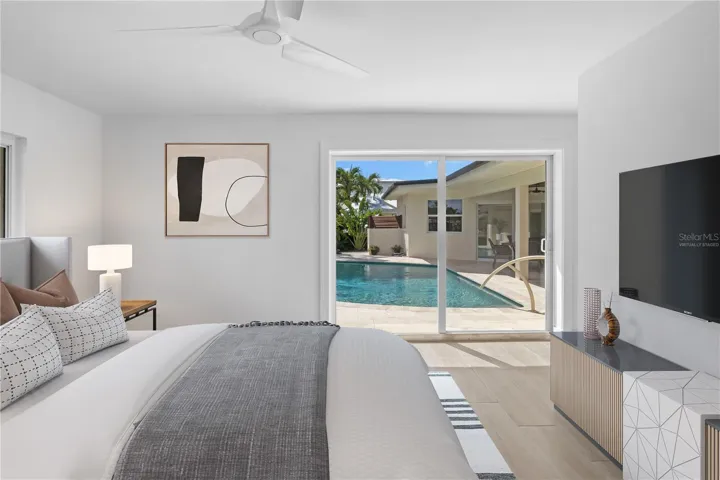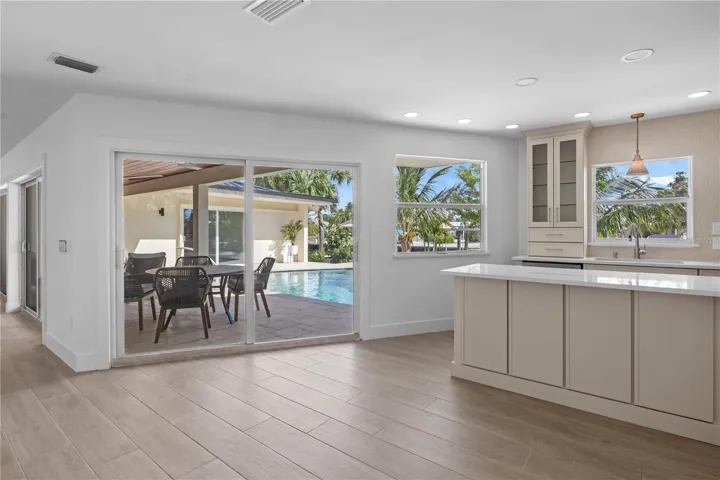 Entertain beautifully: a sleek, brand-new kitchen with island opens to the dining area and elongated living room, creating seamless indoor-outdoor flow. The primary suite sits poolside with a private ensuite—ideal for morning swims or coffee on the lanai. Two additional bedrooms share a well-appointed bath and can easily convert to a chic home office or guest quarters.