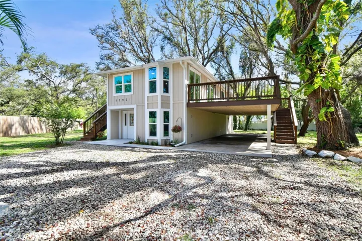 One or more photo(s) has been virtually staged. Welcome to this charming 3-bedroom, 2-bathroom home offering 1,700 square feet of living space in the desirable community of HOLIDAY CLUB in Odessa! Nestled along a breathtaking chain of lakes, including the 100-ACRE SKIABLE LAKE ANN, with a private BOAT RAMP! This home has been FULLY REMODELED and no detail left untouched and sitting on a .37 acre OVERSIZED LOT! Plenty of room to build a detached garage or ADU! Step inside to discover a fresh and modern interior, featuring new flooring throughout, all-new kitchen and bathroom cabinets, sleek countertops, and stylish finishes. A BRAND-NEW ROOF, AC, IMPACT WINDOWS, kitchen cabinets with a STAINLESS STEEL APPLIANCE SUITE, QUARTZ COUNTERTOPS and updated plumbing to ensure peace of mind and worry-free living. The home’s layout offers convenience and flexibility, with the master bedroom with en suite bathroom located on the second floor and two additional bedrooms on the first level. FRESHLY PAINTED inside and out, the property also showcases NEW stairs and railing, plus a spacious NEW deck on the west side for enjoying the outdoors. Located in FLOOD ZONE X with a LOW HOA that includes access to fantastic amenities such as… a SECURE FRONT GATE, community playground with basketball court, a PRIVATE BEACH/PARK with boat ramp and volleyball court, 2 docks, picnic areas with grills, and all within a GOLF CART FRIENDLY community. This home offers the ideal blend of comfort and active lakeside living. Park all your toys in the oversized lot (.37 acre), with plenty of room for your RV, boat or trailer! Zoned for incredible local schools, and centrally located just 12 minutes to the Veterans Expressway, and 30 minutes to Tampa International Airport. Don’t miss your chance to own a move-in ready gem in one of Odessa’s most sought-after lakefront neighborhoods!