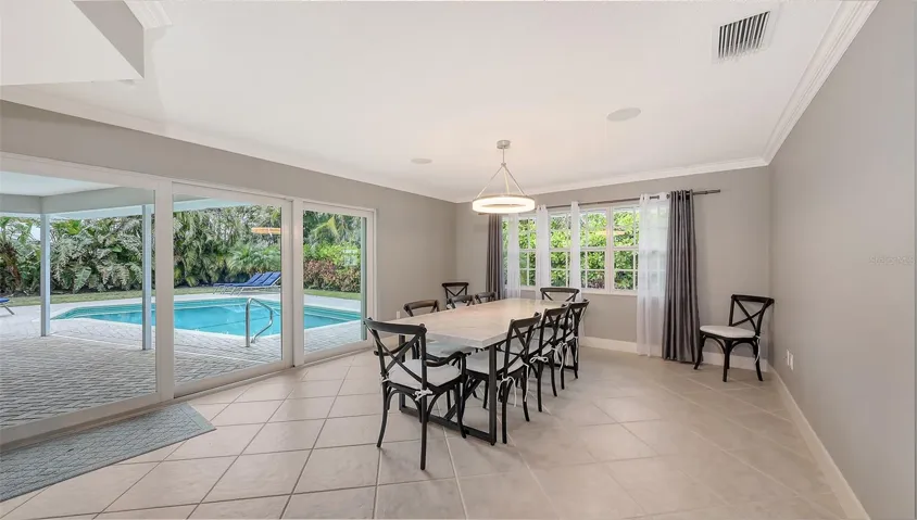 This lovely Bird Key garden home resides on a corner lot with a large circular paver driveway and beautiful landscaping that leads to the front door with the 2 car garage located on the side of the house. Inside, you will find abundant natural light with many windows and glass sliders that afford a splendid view of the large yard and pool area with a private garden wall. This three-bedroom residence has a split floor plan offering a private master suite, complete with 2 walk-in closets, an en-suite bathroom, and sliding doors to the pool deck. The two guest bedrooms and a second bathroom complete the other end of the house. A powder room and an oversized laundry room with a sink and loads of storage are a bonus not found in many garden homes. The kitchen overlooks the large backyard and pool area, with granite countertops, stainless steel appliances, and a breakfast bar overlooking the family/dining room. The house has high-impact windows & sliding doors, a heated pool, a well for irrigation, and mature lush landscaping that provide privacy and a large fenced back yard. The most recent upgrades and improvements from the interior to the exterior include re-ling the plumbing under the slab. The garage was gutted, painted and the floor epoxied. Updated interior baseboards and stunning interior lighting were installed throughout the home, giving it an updated, sleek look. This home is move-in ready. Live the comfortable Florida dream by opening large sliders to the pool area, with neutral tile throughout and a spacious flowing floorplan that makes the indoor-outdoor lifestyle easy. This residential island has its own optional Bird Key Yacht Club, tennis courts, swimming pool, fitness room, social scene, boat slips, marina, indoor and outdoor dining. These are the perfect ingredients for making this your private island retreat, complete with nearby beaches, dining, shopping, excellent schools, and the beautiful downtown area.