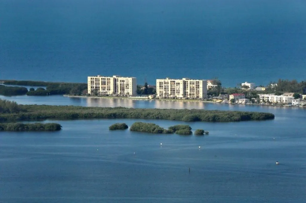 This beautifully updated 1-bedroom, 1-bath penthouse condo blends comfort and style with sweeping water views from every room. Sleeps 4. Located on the quiet southern end of Siesta Key, this top-floor retreat sits within a secure, 5+ acre gated community surrounded by lush tropical landscaping. From your windows and lanai, enjoy panoramic views of the Gulf of Mexico, Little Sarasota Bay & ICW, Blind Pass Lagoon, Midnight Pass, and the 35-acre Jim Neville Marine Preserve. Here, every day begins with a stunning sunrise and ends with a glowing sunset—accompanied by dolphins, manatees, and seabirds just outside your door.