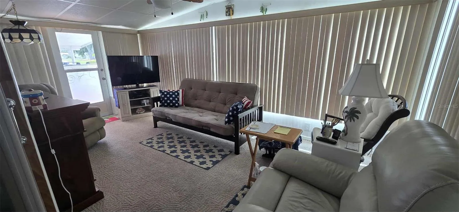 A bright Florida Room provides additional living space and overlooks the landscaped surroundings. The spacious primary suite includes a large walk-in closet and an en-suite bathroom. The guest bedroom is generously sized, with a full bathroom conveniently located across the hall.