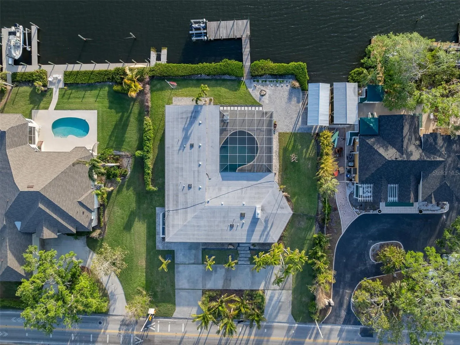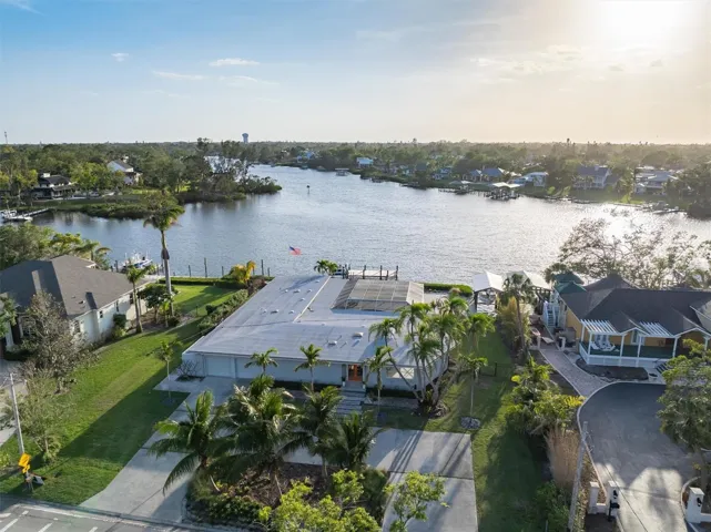 Step into this stunning midcentury modern residence, ideally positioned along the sought-after Riverview Boulevard. Offering 125 feet of waterfront views on Warner’s Bayou West, this unique property blends timeless design with serene natural beauty. Inside, the spacious 4-bedroom, 4-bathroom home showcases classic midcentury architecture in a striking courtyard-style layout. Clean lines, an airy open-concept interior, and a seamless integration of indoor and outdoor spaces create an inviting atmosphere. Perfect for entertaining, the home features 75 feet of sliding glass doors that flood the interior with natural light and frame uninterrupted bayou views. Step out onto the expansive covered lanai, where you’ll find a large saltwater pool, outdoor shower, outdoor grill, and multiple seating areas, ideal for gatherings large or small, all set against a backdrop of sunsets. Outdoor living continues with a boathouse and boat lift on the north side of the property, as well as a private dock with two jet ski lifts, perfect for boating enthusiasts or anyone who loves waterfront living. Impacted by Hurricane Helene in 2024, the home was promptly and professionally remediated and is ready for its next chapter. Whether you’re restoring its midcentury charm or envisioning a fresh start, this property presents a rare opportunity to create your dream home. Don’t miss your chance to own a piece of Riverview Boulevard, where location, land, and lifestyle come together in one exceptional offering.