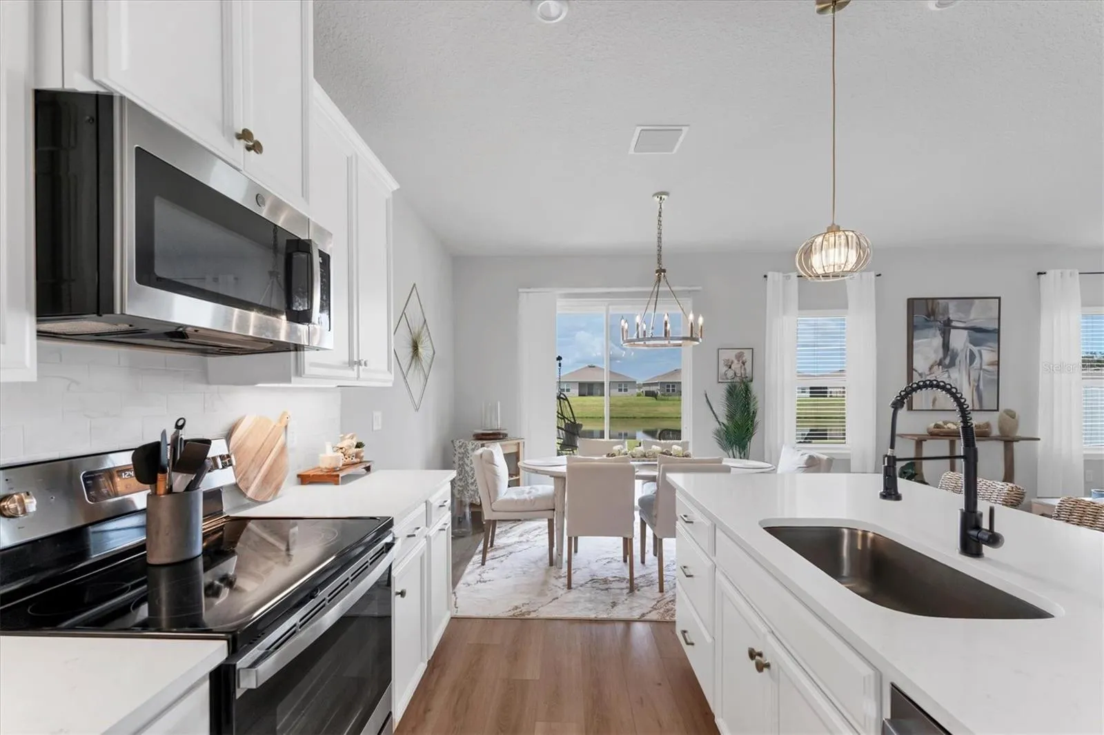builder upgrades, including luxury vinyl plank flooring, quartz countertops, and rich wood