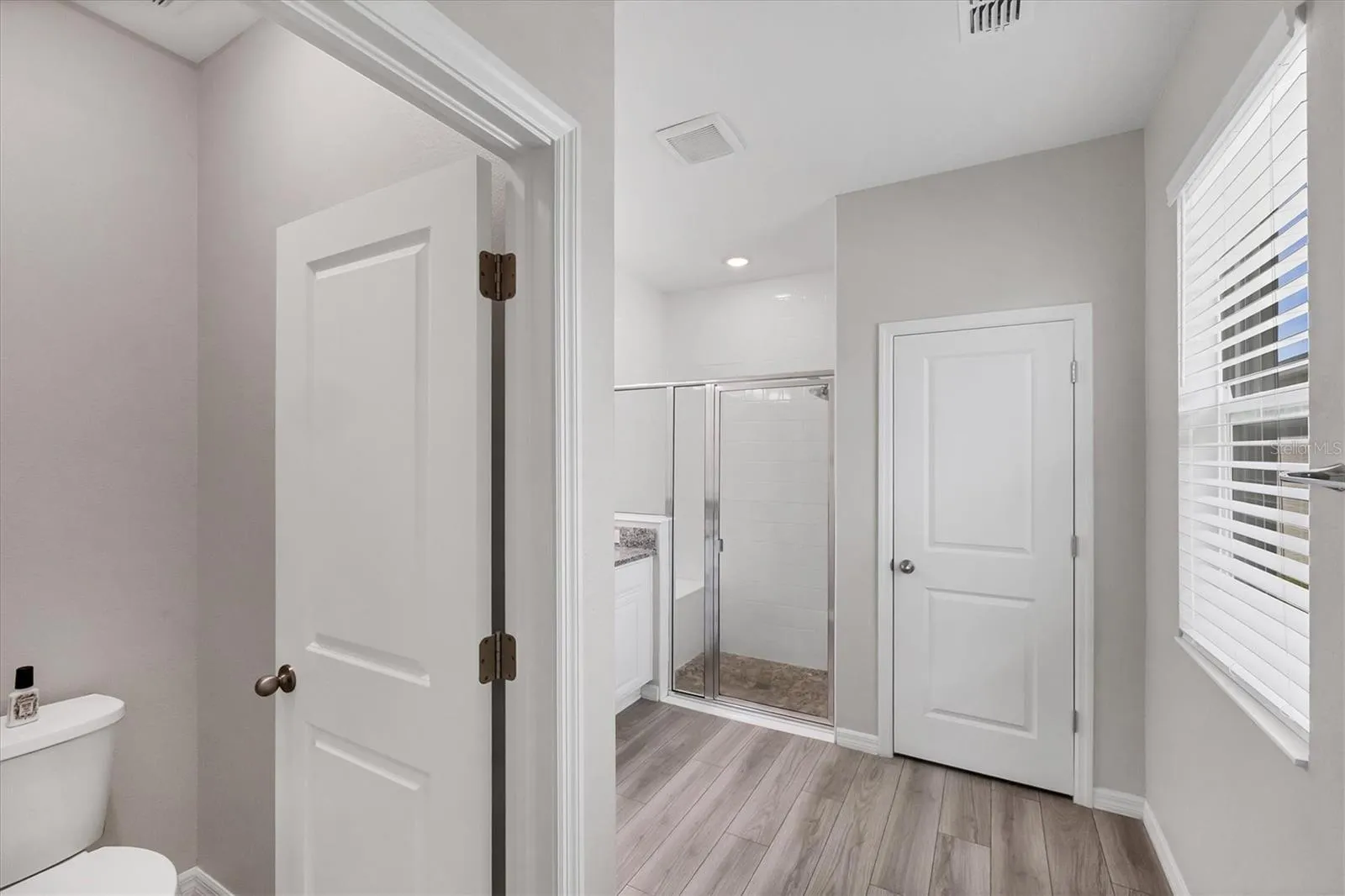 A true highlight is the split floor plan, providing privacy for everyone. The guest bedroom features its own ensuite bathroom, ideal for visitors, extended family, or even a private home office. The remaining bedrooms feature luxury vinyl plank flooring, ensuring low maintenance and timeless appeal.