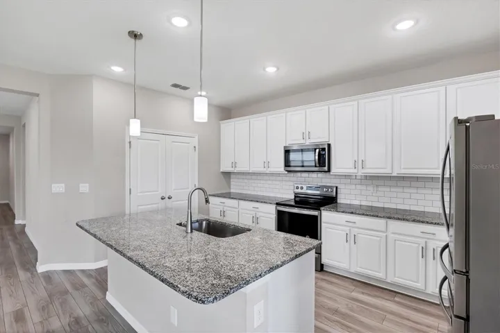 The heart of the home is the spacious great room, perfectly designed for family gatherings, movie nights, or entertaining friends. The chef-inspired kitchen is complete with stainless steel appliances, solid wood cabinetry, and gleaming granite countertops, making it a space you’ll love to cook and create memories in.