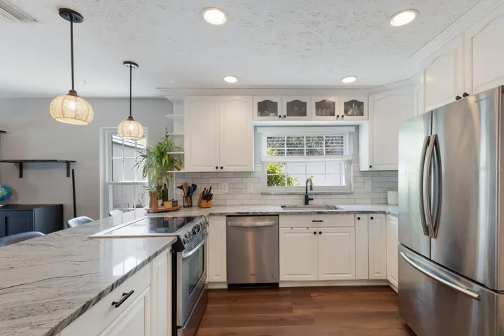 WELCOME to this BEAUTIFUL 3 bedroom, 2 bath, 2 car garage POOL home in the sought after community of Tarawood in the heart of Carrollwood!!! This one story home offers 1,872 sq. ft. of comfortable living space and sits on a desirable CORNER LOT providing extra room and PRIVACY. As you enter, you’re greeted by a spacious living room and dining room filled with natural light and VAULTED ceilings, with the living room featuring a wood-burning FIREPLACE perfect for cozy evenings and the dining area overlooking the pool for casual or formal meals. The fully UPDATED kitchen opens to the family room and is ideal for entertaining, boasting granite countertops, stainless steel appliances, a STYLISH tiled backsplash, and an extended island with seating for everyday dining. The primary suite is a true retreat with sliding doors that lead to the patio, a walk-in closet, and an ENSUITE BATH complete with a glass enclosed tiled shower with built-in bench. Two additional bedrooms share a full bath with a tub, offering comfort for family or guests. Step outside to your private Florida oasis with a screened lanai featuring a covered sitting area and SALTWATER POOL, perfect for year round fun and entertaining, while double French doors from both the living and family rooms create a seamless flow between indoor and outdoor living. The FENCED backyard provides an open grassy area ideal for pets, gardening, or relaxing in the sun. Additional highlights include LUXURY VINYL FLOORING throughout, a NEW AC unit, WHOLE HOUSE WATER FILTRATION SYSTEM with WATER SOFTENER, HURRICANE RATED WINDOWS, an alarm system on all doors and windows, and LUSH mature landscaping. Tarawood is a hidden gem of an established community known for its beautiful OAK TREE lined streets and UNIQUE homes, conveniently located near USF, downtown Tampa, Ybor City, Tampa International Airport, shopping, restaurants, schools, and major highways, making this home the perfect blend of comfort, style, and location. Don’t wait and start living your Florida LIFESTYLE today!!