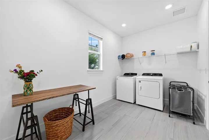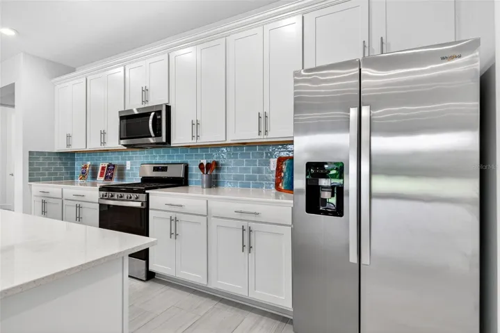 The heart of the home is the CHEF’S KITCHEN, featuring a MASSIVE CENTER ISLAND, QUARTZ COUNTERTOPS, WHITE SHAKER CABINETRY, STAINLESS STEEL APPLIANCES, and NATURAL GAS COOKING. Perfect for gatherings, the kitchen flows seamlessly into the SPACIOUS LIVING and DINING AREAS, enhanced by LARGE WINDOWS that showcase the BEAUTIFUL WATER and PRESERVE VIEWS.