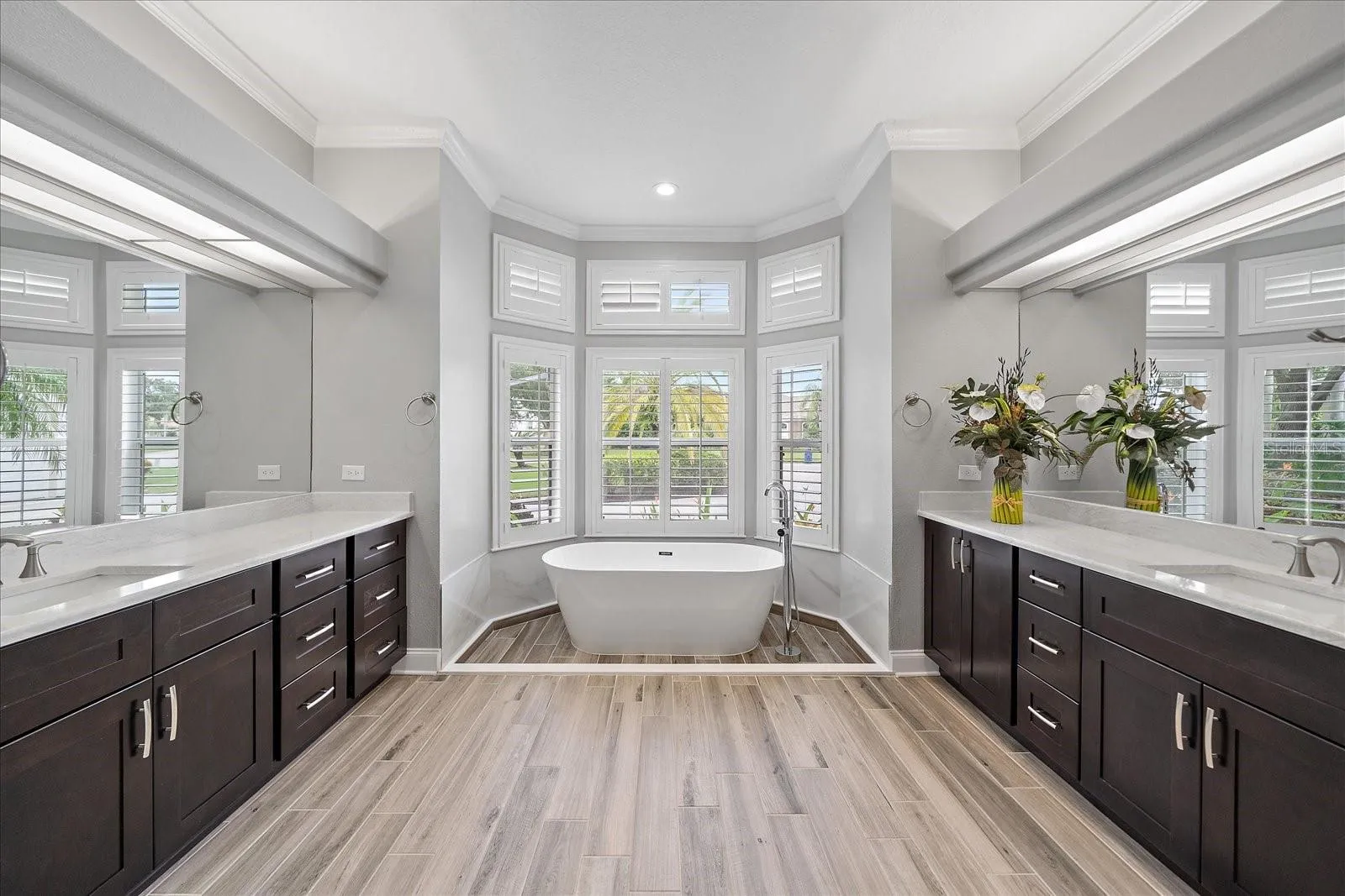 SIMPLY STUNNING & FULL OF STYLE! This COMPLETELY REMODELED home sits on almost ¾ acre overlooking the 10th hole of the golf course in the Desirable River Club Community-where you’ll enjoy LOW HOA, NO CDD, and “A” Rated Schools!