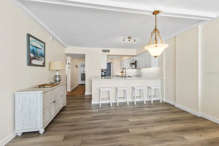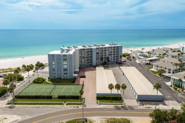 Soaring above the coastline on Anna Maria Island, this rarely available 5th floor condo at the Martinique delivers a front row seat to one of the most spectacular views on the Gulf Coast. Expansive windows in the living area and primary suite frame an endless horizon of blue, casting natural light across the updated interiors. The layout is open and easy, with two spacious bedrooms, two full baths, and a breezy coastal feel throughout. The kitchen features sleek stone counters, shaker cabinetry, and a wide breakfast bar perfect for laid back dining or entertaining. Just outside, you’ll enjoy resort style living with a large heated beachside pool, tennis courts, and private beach access to one of the most gorgeous beaches in Florida. You’ll also appreciate the added bonus of your own deeded garage and separate storage unit for all the beach gear, bikes, and extras. Whether you’re watching the sunset from your living room, soaking in the sun on the sugar sand beach or strolling to nearby shops and restaurants, this is the kind of place that makes every day feel like a vacation.
