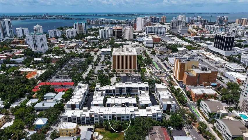 WELCOME Home to The Q an Enclave of 40 Townhomes with varied floorplans, located on Ringling Boulevard in The Heart of Downtown Sarasota without the high fees typically associated with downtown residences! 213 Cosmopolitan Court offers the largest floorplan with three floors of spacious living, one bedroom and en-suite bath along with lovely daytime living space with custom built-in bookshelves off both the first and third floor bedrooms. Each floor of the three floors has one bedroom and en-suite area. All bedrooms have custom built in closet systems. The open space can be used in a variety of ways. Choose to make an office area, a study, a music area, it’s your decisions create the best functionality for your lifestyle. Floors one and two have walk out terraces. No neighbors above or below!