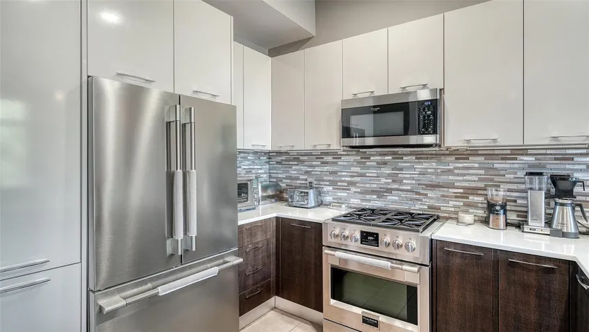913 Cosmopolitan Court is the perfect floorplan for entertaining guest— designed with a half bath located near the living room. This lovely townhome has a private elevator, two-car garage with a custom finished third floor patio complete with a covered roof top and electric sunshade. The Q enclave includes commercial grade Miami-Dade impact-rated windows and doors, luxurious Lube Italian kitchen and bath cabinetry, Fulgor Milano appliances with natural gas cooktop and Bosch dishwasher, Caesarstone quartz countertops and German Hansgrohe plumbing fixtures. The all-interior doors are solid core, 8-foot-tall dark wood, volume ceilings, a stylish freestanding soaking tub, spacious showers and large closets. Built in ceiling ‘invisible’ ceiling speakers along with state of the art in home customizable programmable security system. Premium porcelain tile flooring, first and second floor terraces, a tankless hot water system and upgraded water system was installed by owners after the build was completed. 213’s bathroom and kitchen areas have been finished in beautifully mosaic tile work throughout. Oversized windows throughout with custom Hunter-Douglas window treatments makes the internal lighting comfortable at all times. The Q community is deeded fee simple, so owners own the land your residence is built on. NO CDD, and the monthly fees are some of the lowest in downtown Sarasota. The location is a quick distance to fine restaurants, specialty stores, banks and opera house, a marina and theatrical arts and two movie theatres. Whole Foods Market, Sprouts grocery, and a weekly year ground Saturday farmer’s market on main street are all in downtown Sarasota. This location is currently Zoned X- which requires no Flood Insurance.