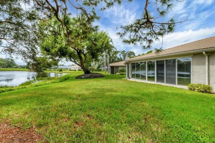 Lovely location on a cul-de-sac of swaying palms, Papillon consists of private enclaves of maintenance free-villas in The Meadows. You will be greeted by a paver sidewalk leading to the front entry with sidelight. Upon entry, wood flooring from the living room and dining room flow to form a cohesive foundation. The kitchen has a breakfast nook or space for cozy family dining. The living room with high ceilings leads to a wall of sliders opening onto a spacious glassed-in lanai offering you gorgeous water views framed by mossy Live Oak trees. The lanai floor was raised to allow flow from the living room and expands the living space and peaceful views. A fireplace with convenient electric insert provides ambiance on those cooler evenings. The spacious primary bedroom features an ensuite bathroom featuring split dual sinks, shower/tub combo, and ample walk-in closet. The guest bedroom is large and just steps away from the guest bathroom with shower/tub combo. A laundry closet houses the full-size washer and dryer and extra storage. Two car garage with extra depth for storage or workbench space and water heater 2017. Peace of mind with block construction and new tile roof 2012, exterior painted, new downspouts and window shutters, HVAC 2017. Above flood plain in zone x. Enjoy the most delightful resort-style heated community pool just steps away on its own private island for a quick dip or meet neighbors for an outdoor happy hour. Walk to The Meadows Shopping Village for restaurants, a new neighborhood pub, hair salon, massage therapist, and other convenient services. Papillon HOA has fully-funded reserves and takes pride in a well-managed neighborhood. Live in a friendly and very active community with 24 hour safety patrol and enjoy the carefree Florida lifestyle! The Meadows offers 54 holes of golf, a highly regarded tennis complex with 15 lighted Har-Tru courts, Jr. Olympic swimming pool with spa, private dog park, basketball, new fitness center, and 10 new pickleball courts. All located within 1,650 acres of tropical mature landscaping with miles of trails, wildlife preserves and over 80 lakes and ponds, while convenient to all that Sarasota offers! Minutes to luxury shopping and dining at UTC Mall, Mote SEA, Nathan Benderson Park for water sports and miles of recreational opportunities, downtown Sarasota for art and cultural activities and world class Gulf beaches.