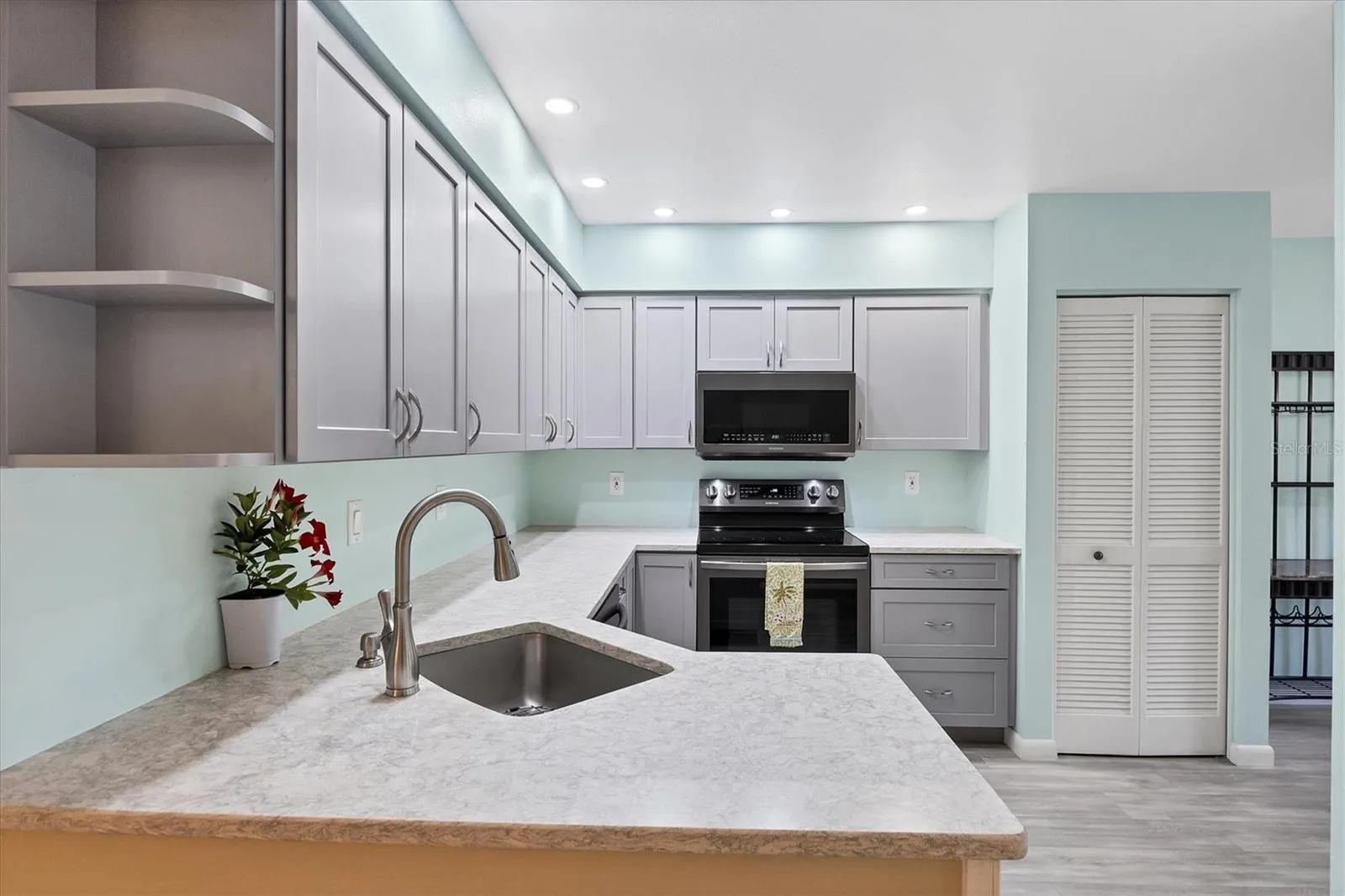 Elegant Coastal Living-Updated 2-bedroom, 2 bath condo in premier 55+ Community. Experience the perfect blend of comfort, style and convenience in this beautifully updated first-floor residence. Upscale updates and features: Designer Pergo flooring throughout the living space. Remodeled kitchen with sleek quartz countertops, stainless steel appliances and custom cabinetry. Master suite with a private en-suite bath and dual sinks, his-hers closets. Light-filled Florida room ideal for morning coffee or quiet afternoons. Private one-car garage with generous storage space. Enjoy an active resort-inspired lifestyle with access to the clubhouse, sparkling pool, shuffleboard courts, and vibrant social gatherings. Just minutes from medical facilities, fine dining, shopping and our pristine beaches. Whether you’re reconnecting with friends or meeting new ones, this community offers the perfect balance of relaxation and recreation.