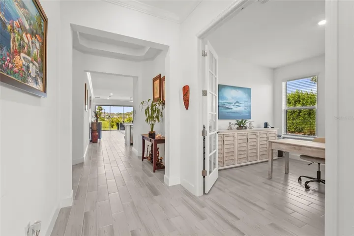 However, the true jewel lies outdoors beneath the covered lanai, where breathtaking pond views and professionally curated landscaping create an atmosphere of tranquil sophistication. The Palmero community elevates lifestyle with exceptional amenities including a heated pool, basketball court, dedicated dog park, volleyball court, and playground facilities.